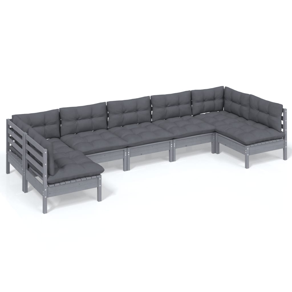 7-tlg. Garten-Lounge-Set mit Grauen Kissen Kiefernholz