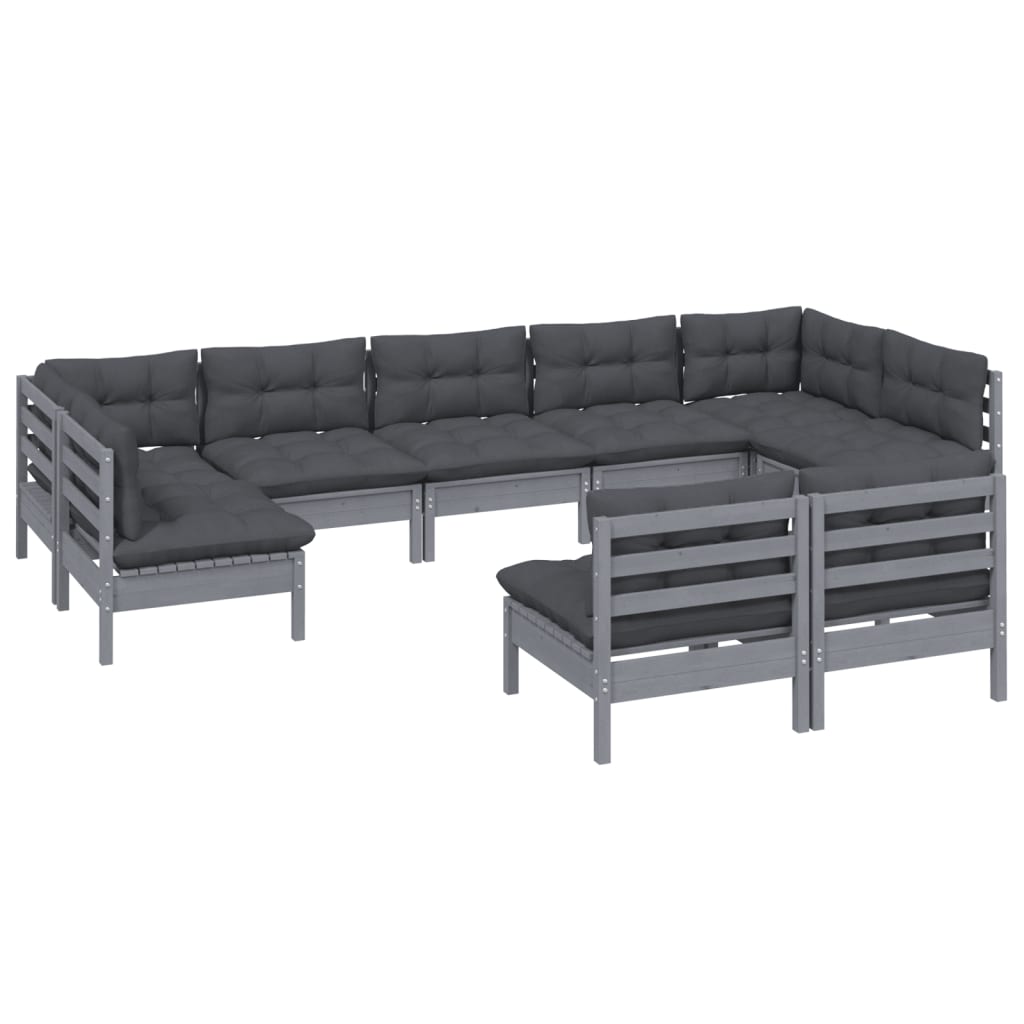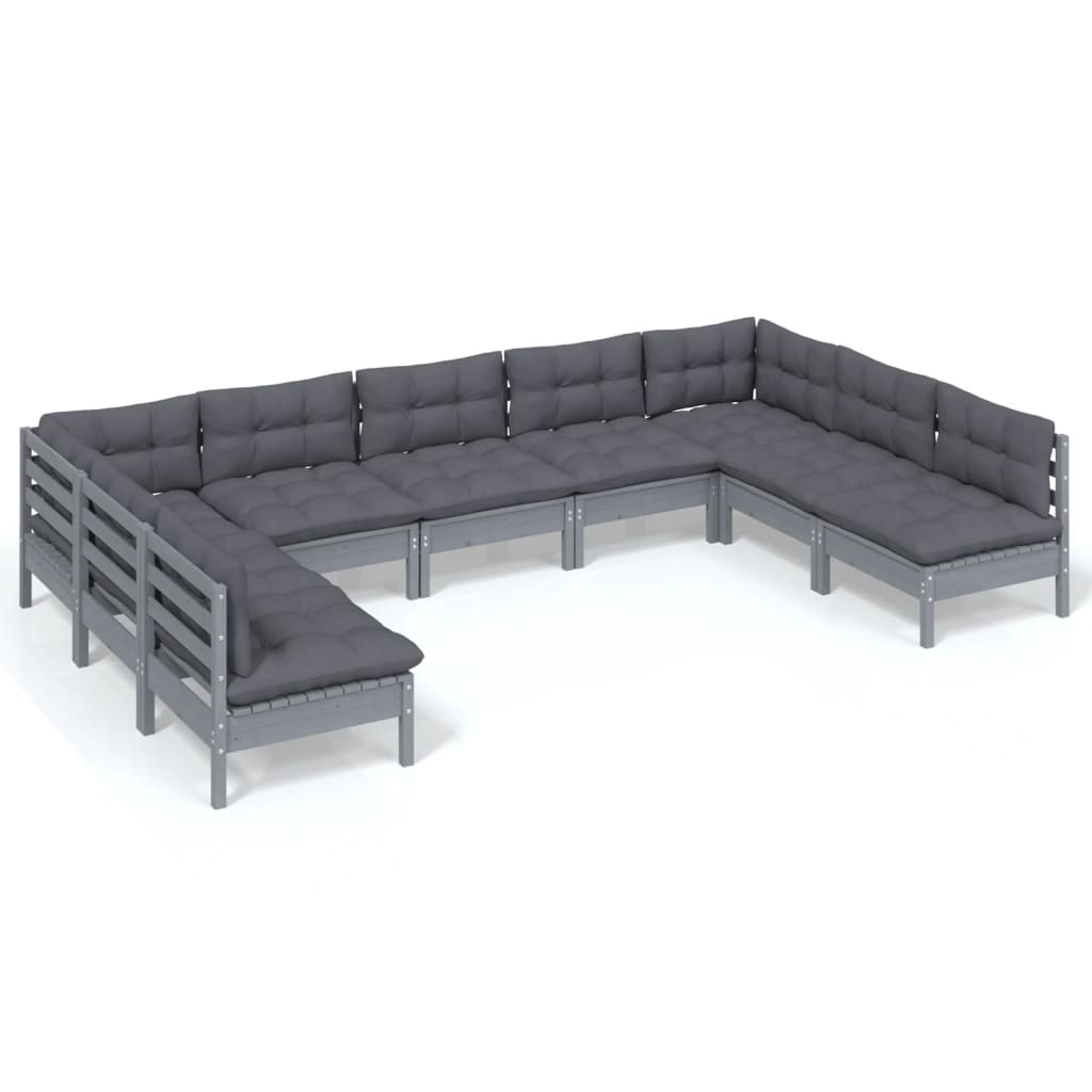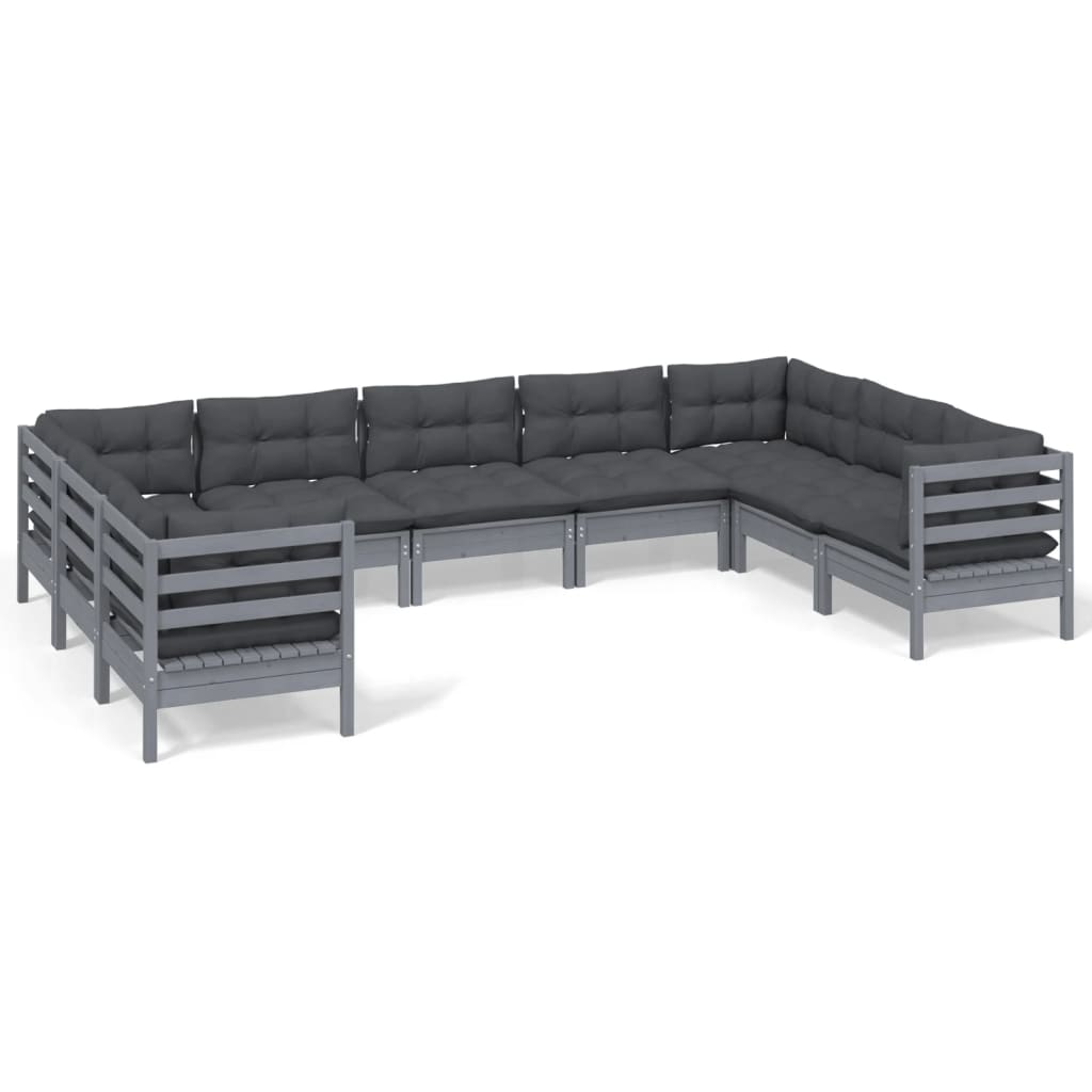 10-tlg. Garten-Lounge-Set mit Grauen Kissen Kiefernholz