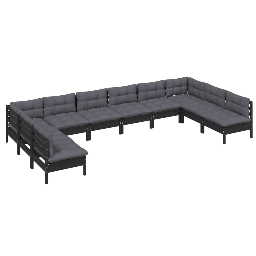 10-tlg. Garten-Lounge-Set mit Kissen Schwarz Kiefernholz