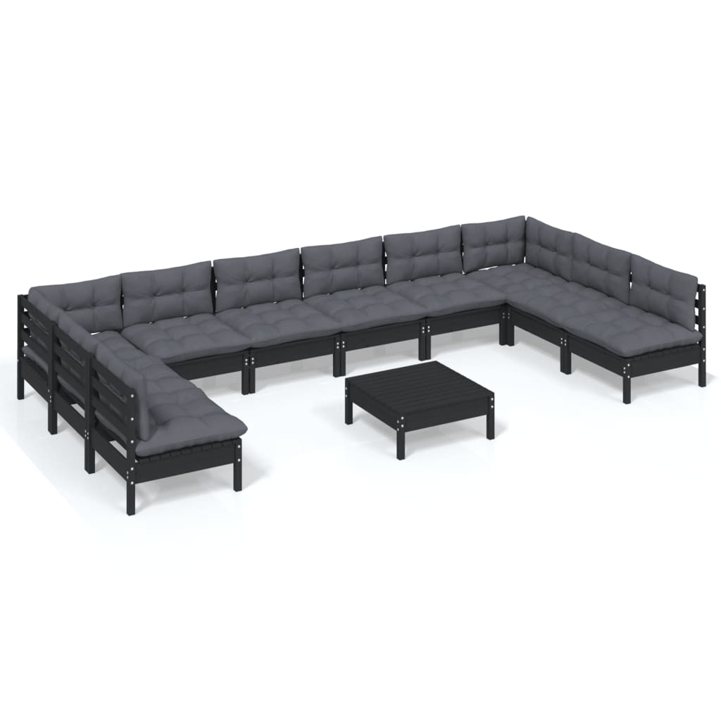 12-tlg. Garten-Lounge-Set mit Kissen Schwarz Kiefer Massivholz