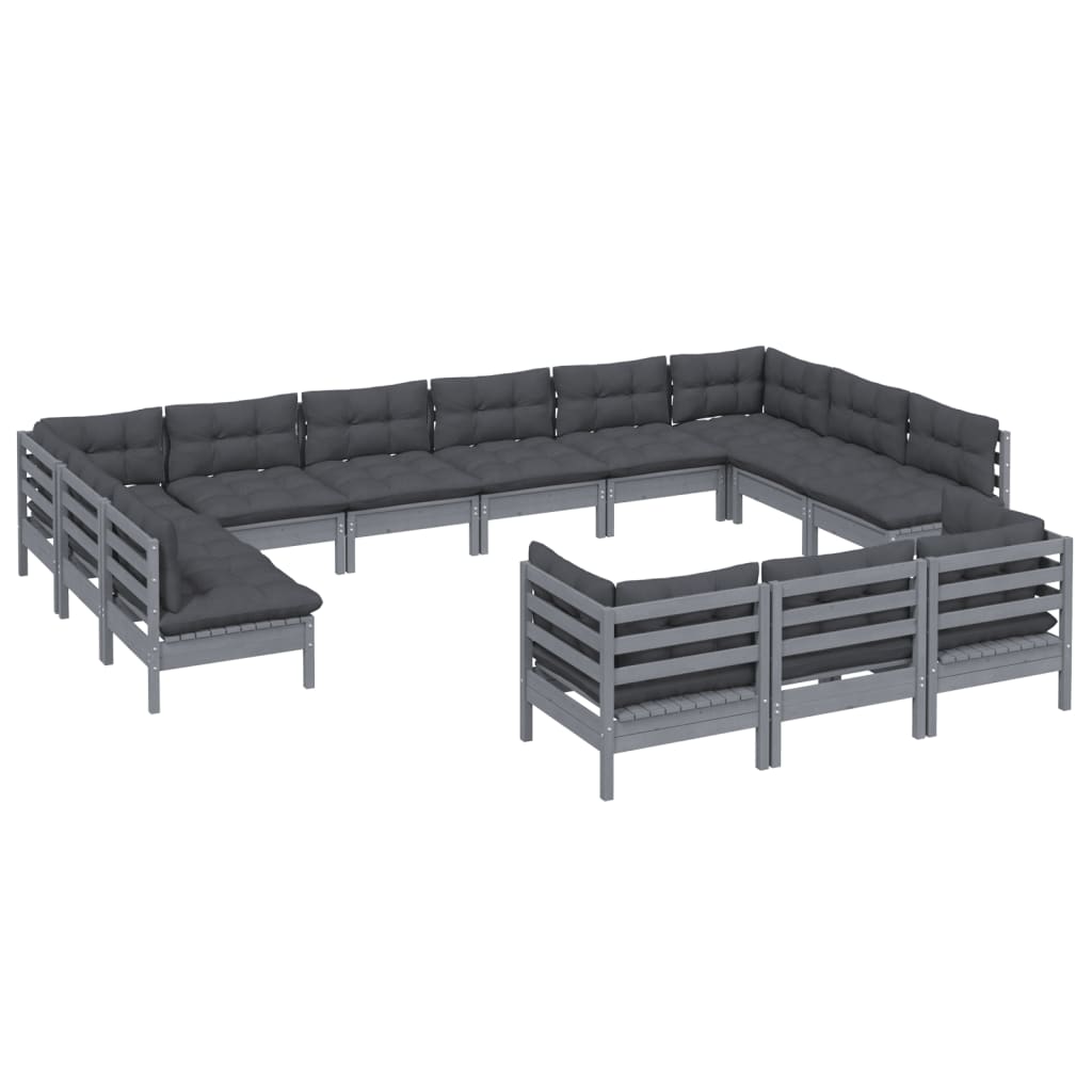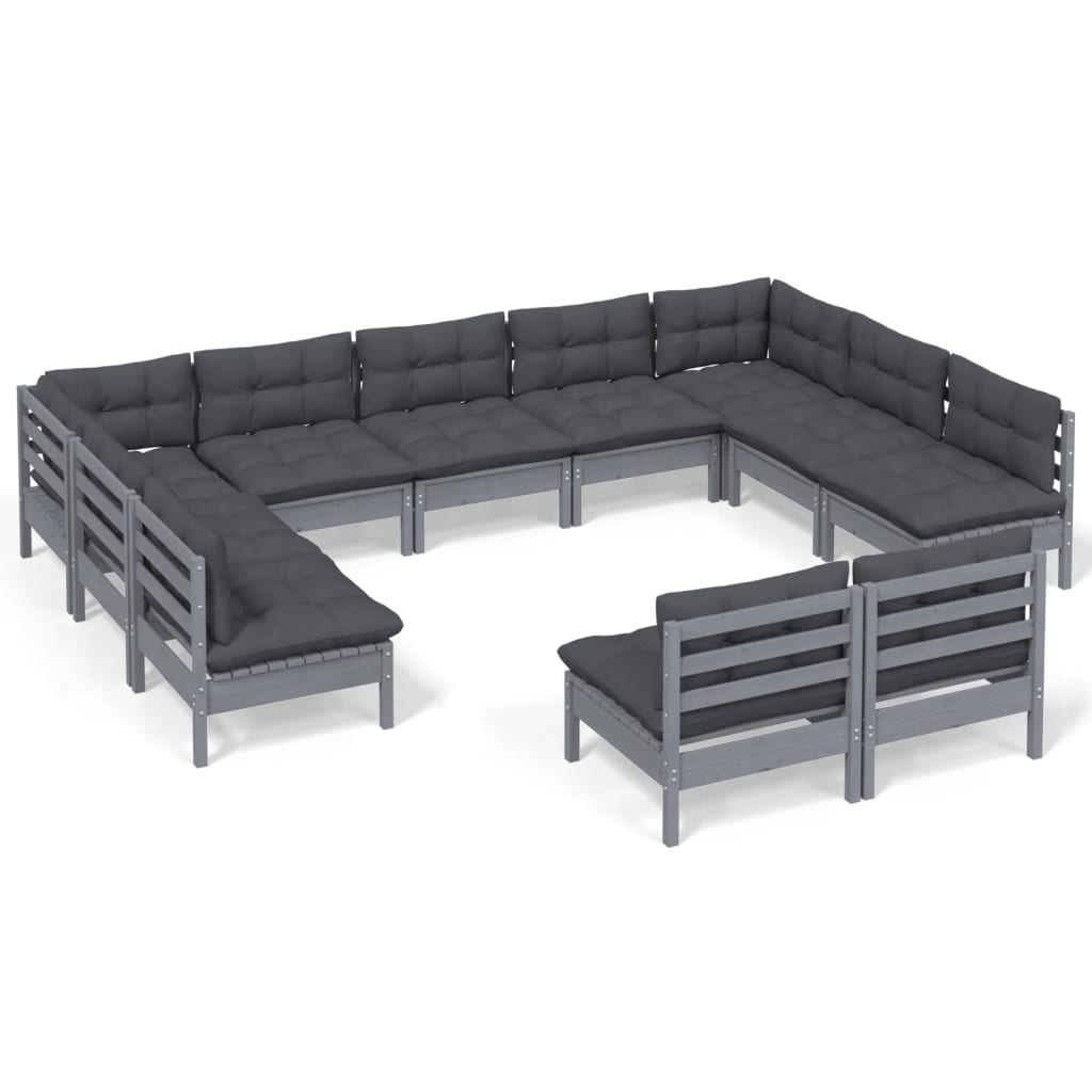 13-tlg. Garten-Lounge-Set mit Grauen Kissen Kiefer Massivholz