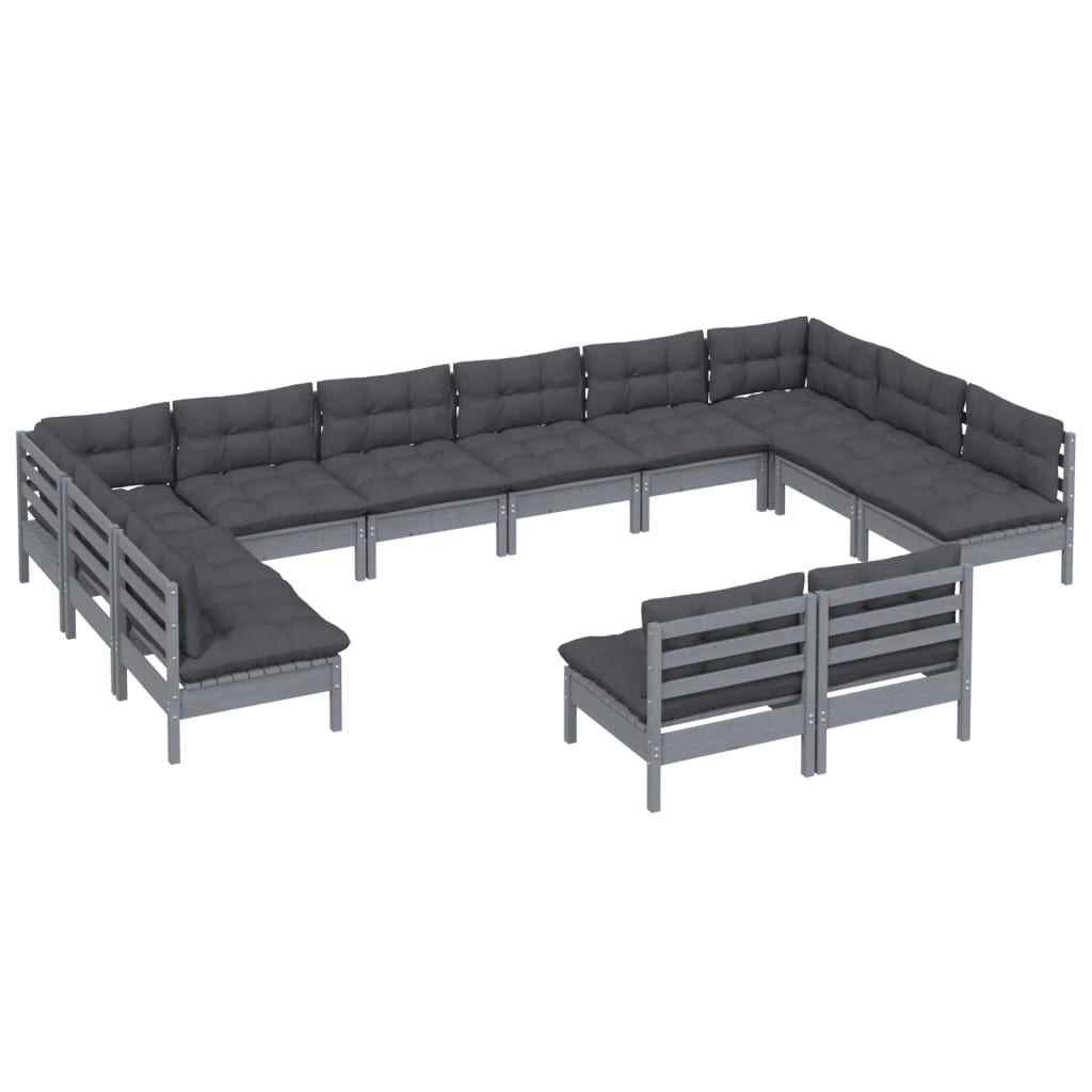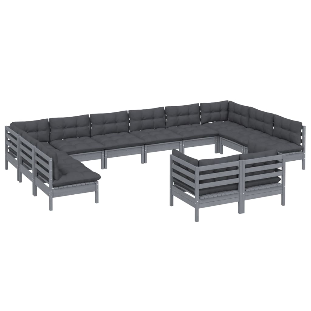 13-tlg. Garten-Lounge-Set mit Grauen Kissen Kiefernholz