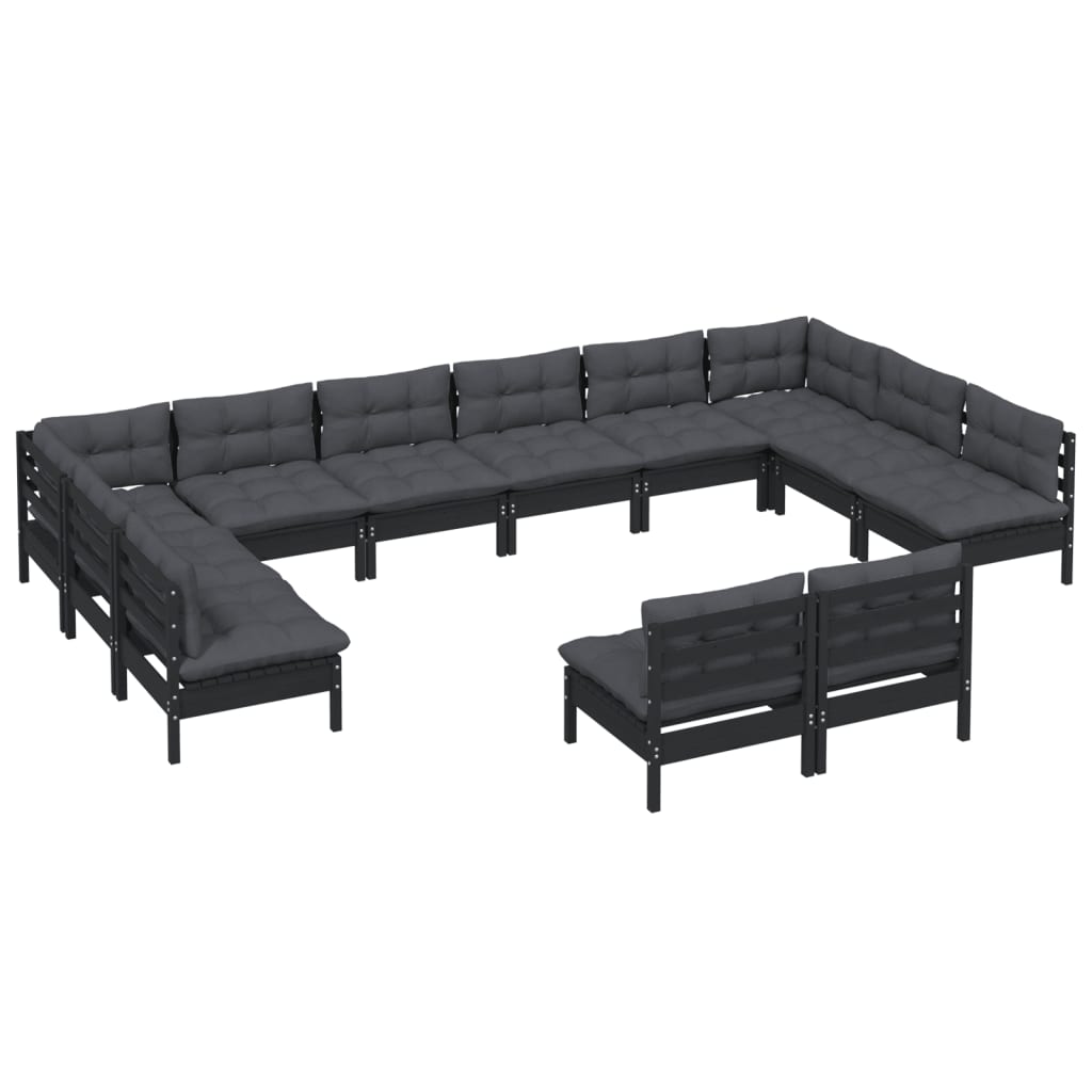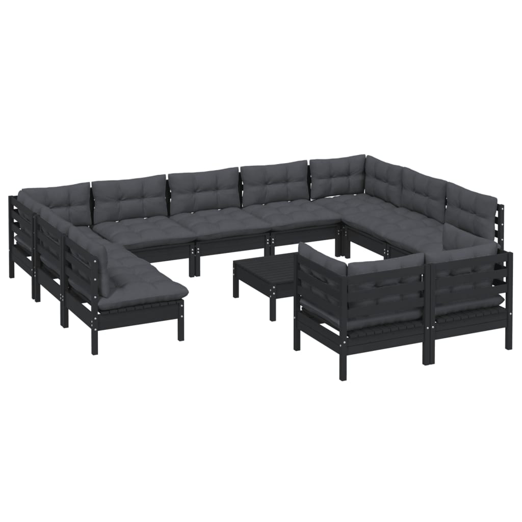 13-tlg. Garten-Lounge-Set mit Kissen Schwarz Kiefer Massivholz