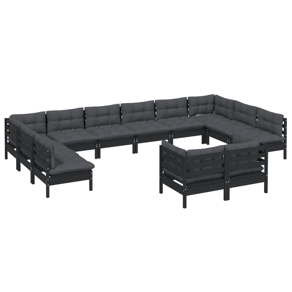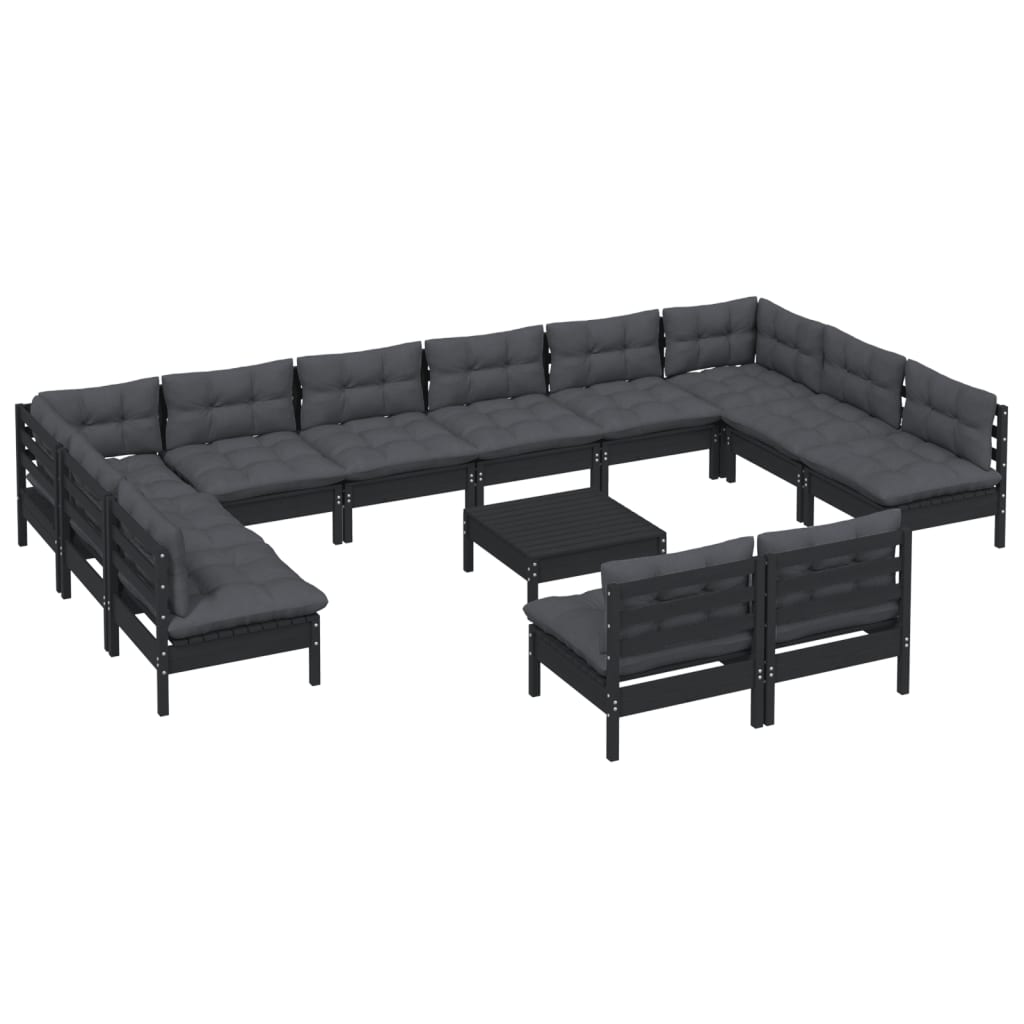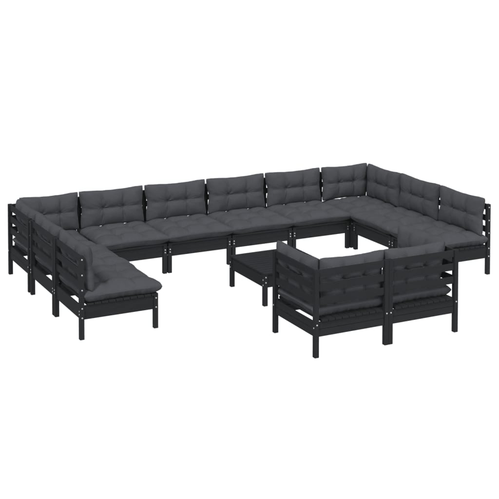 13-tlg. Garten-Lounge-Set mit Kissen Schwarz Kiefernholz