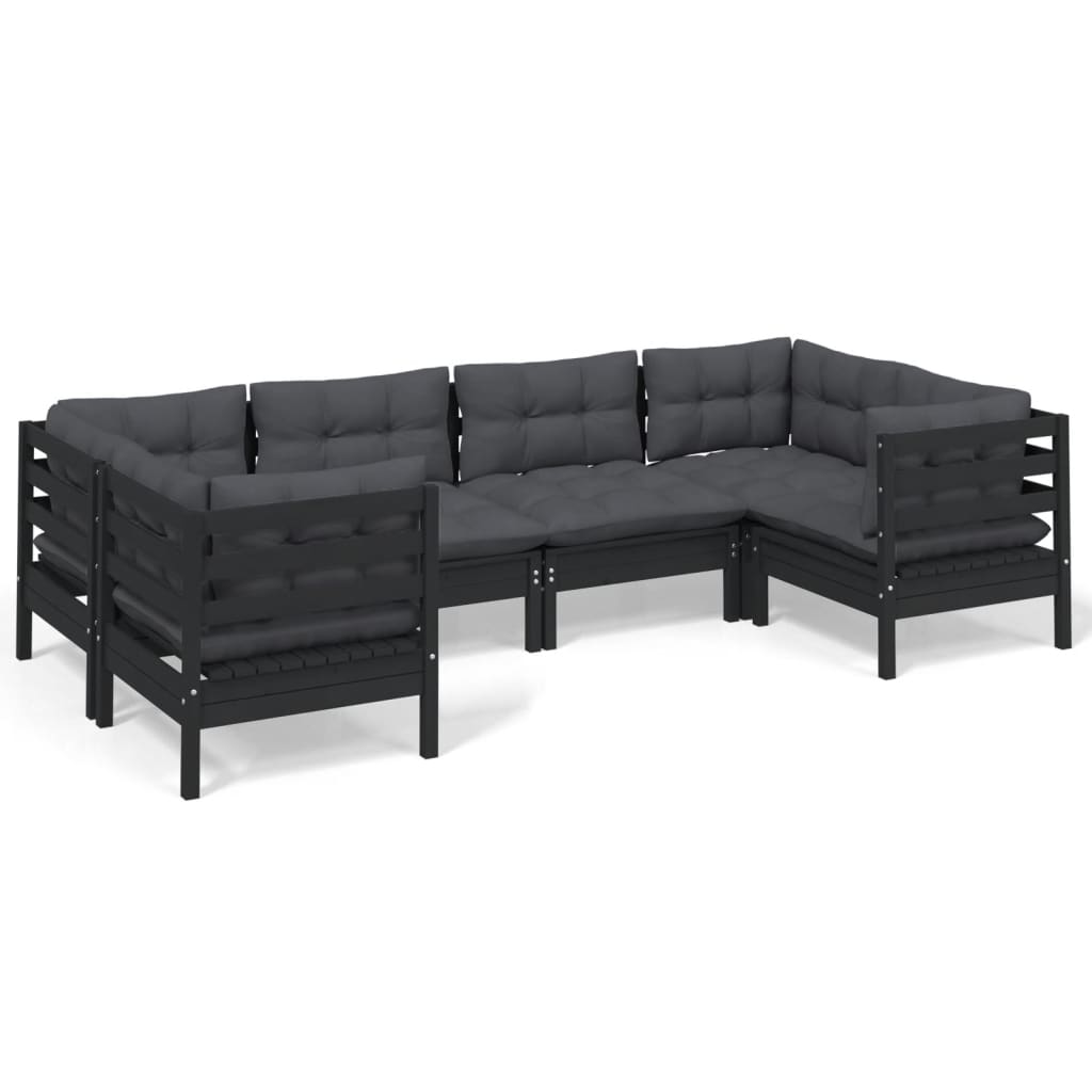 6-tlg. Garten-Lounge-Set mit Kissen Schwarz Kiefernholz