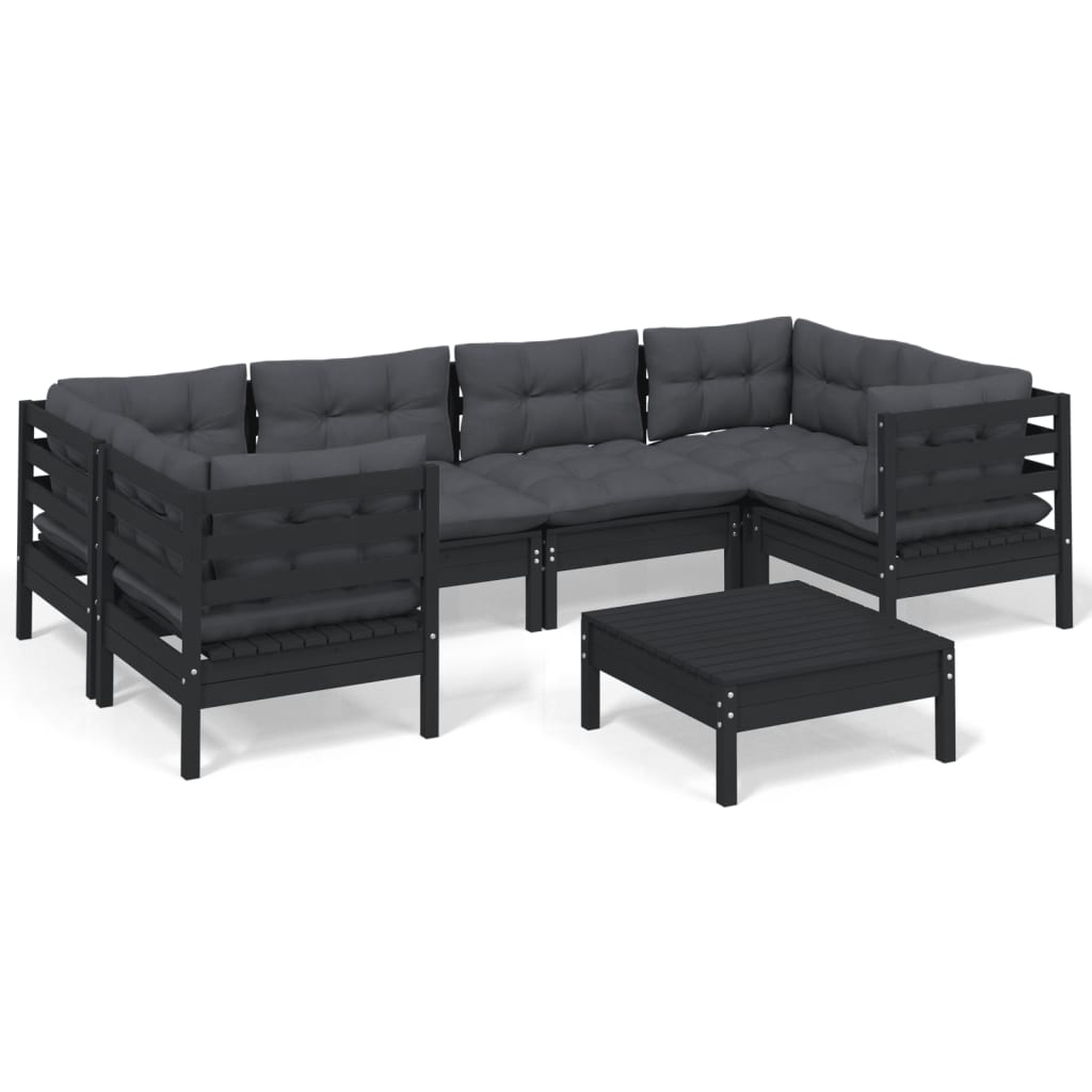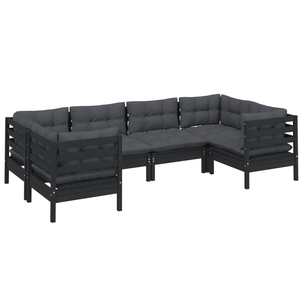 7-tlg. Garten-Lounge-Set mit Kissen Schwarz Kiefernholz