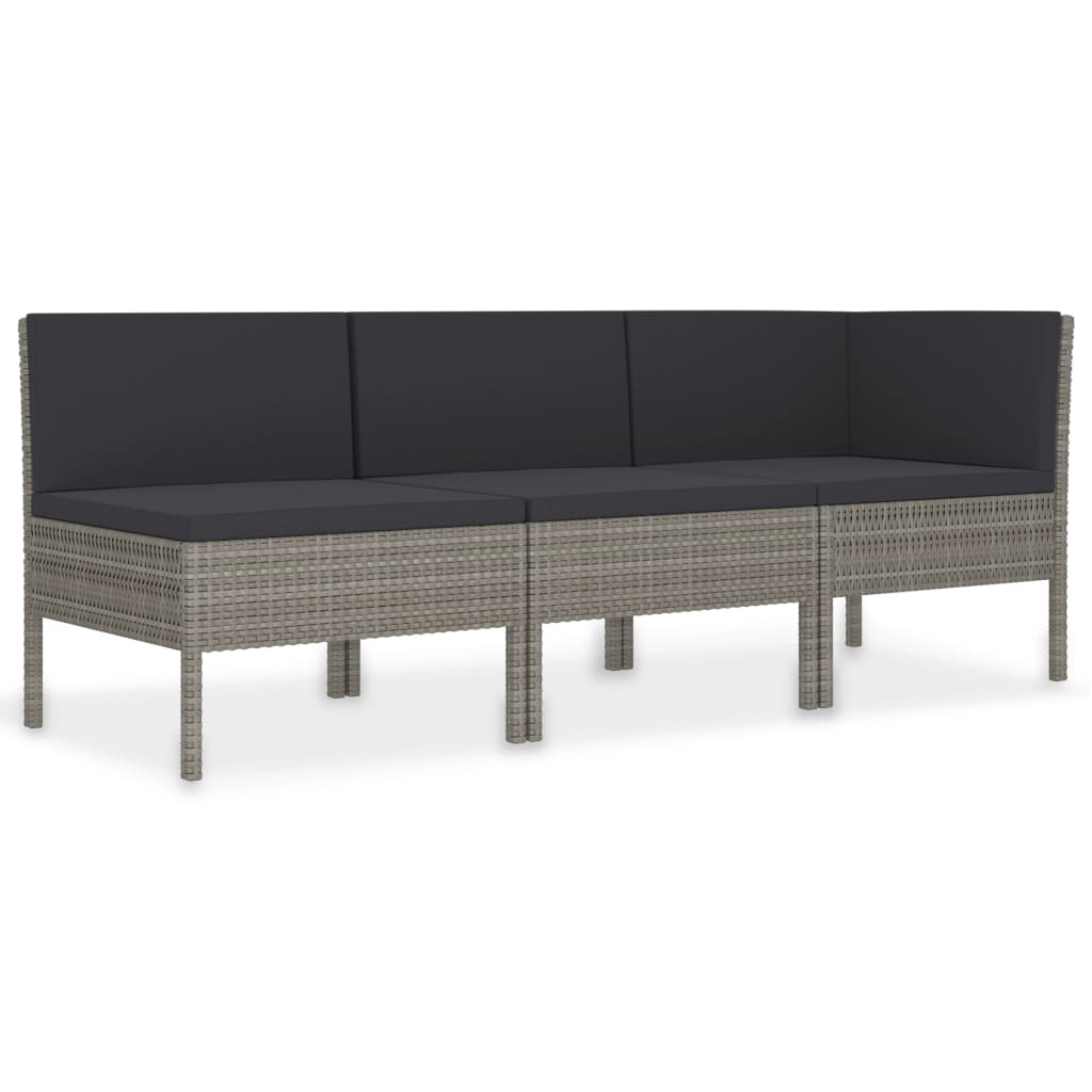 3-tlg. Garten-Lounge-Set mit Auflagen Poly Rattan Grau