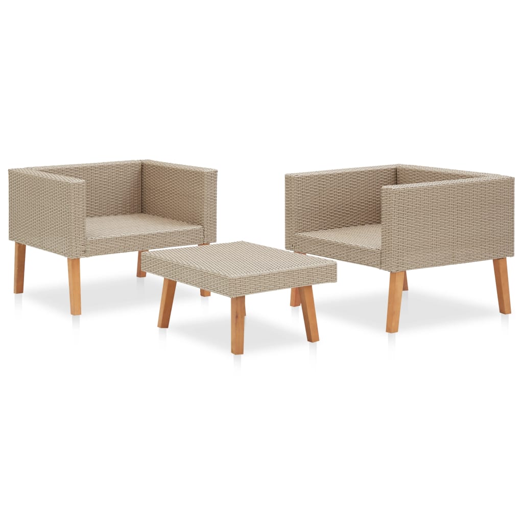 3-tlg. Garten-Lounge-Set mit Auflagen Poly Rattan Beige