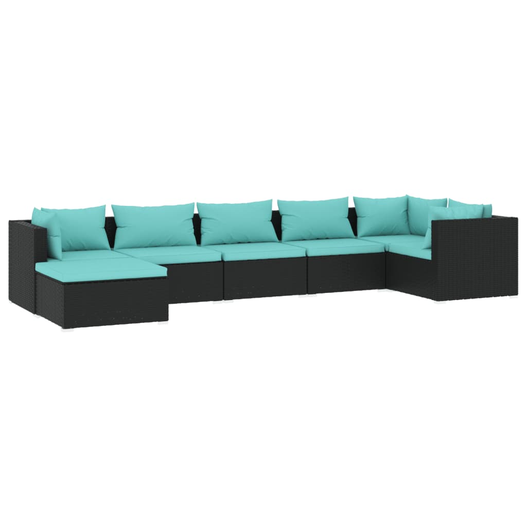 7-tlg. Garten-Lounge-Set mit Kissen Poly Rattan Schwarz