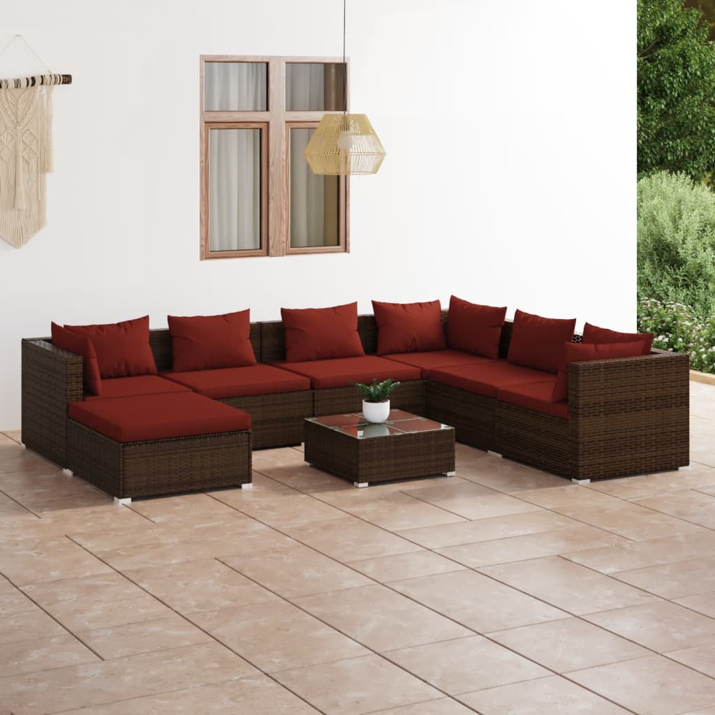 9-tlg. Garten-Lounge-Set mit Kissen Braun Poly Rattan