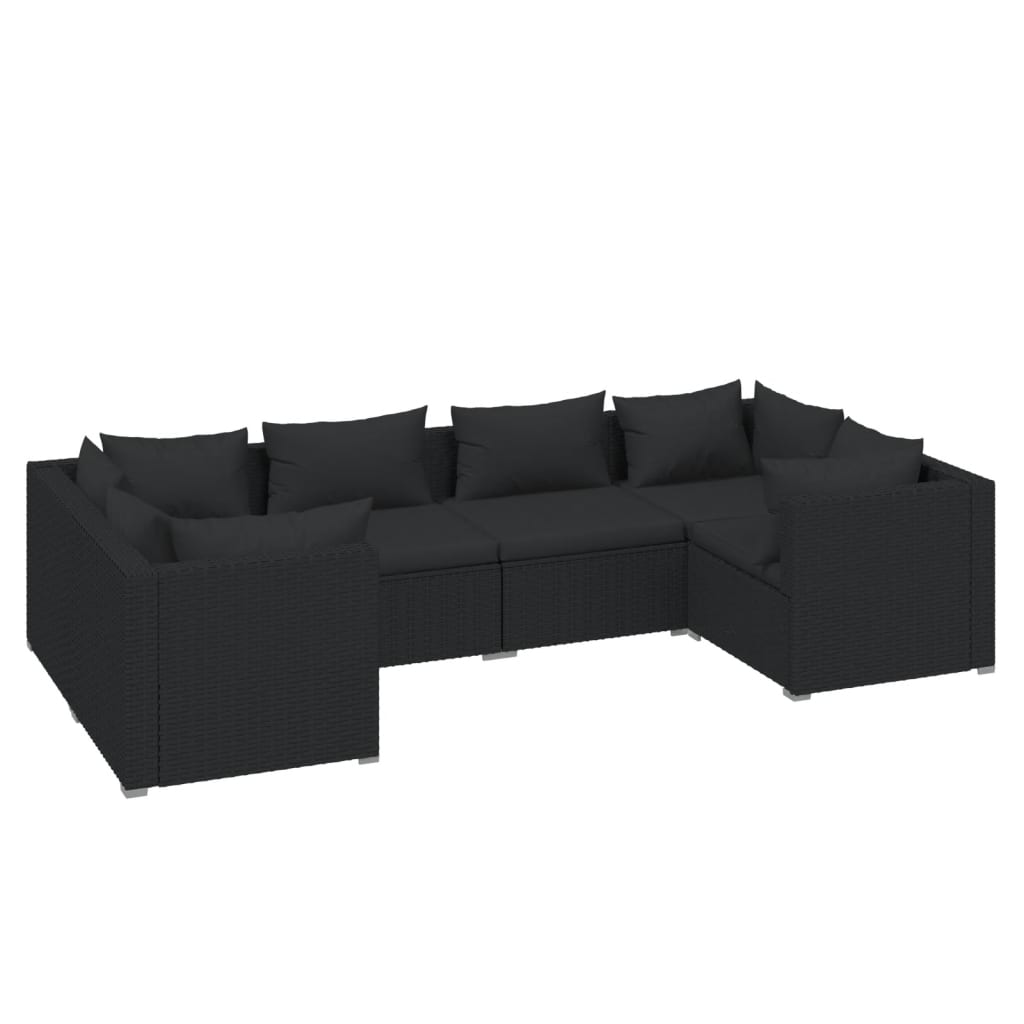6-tlg. Garten-Lounge-Set mit Kissen Poly Rattan Schwarz