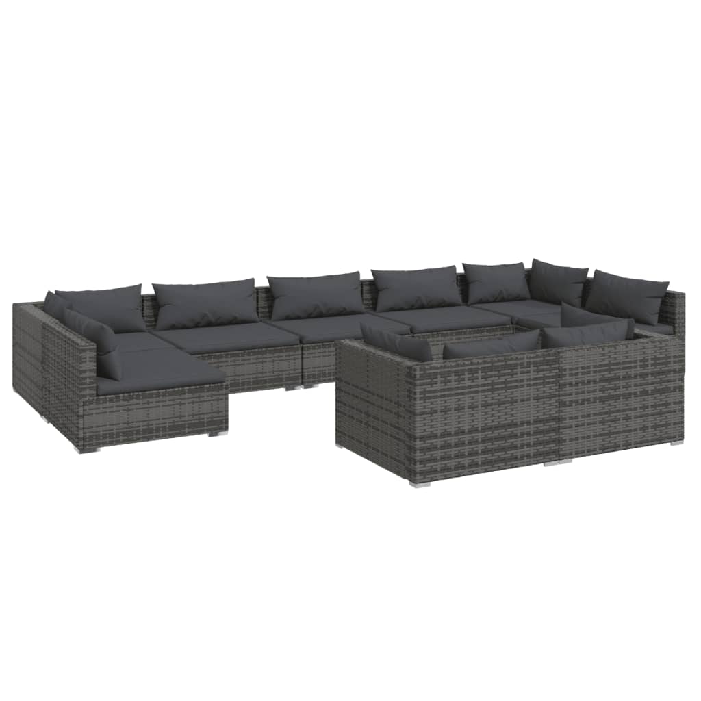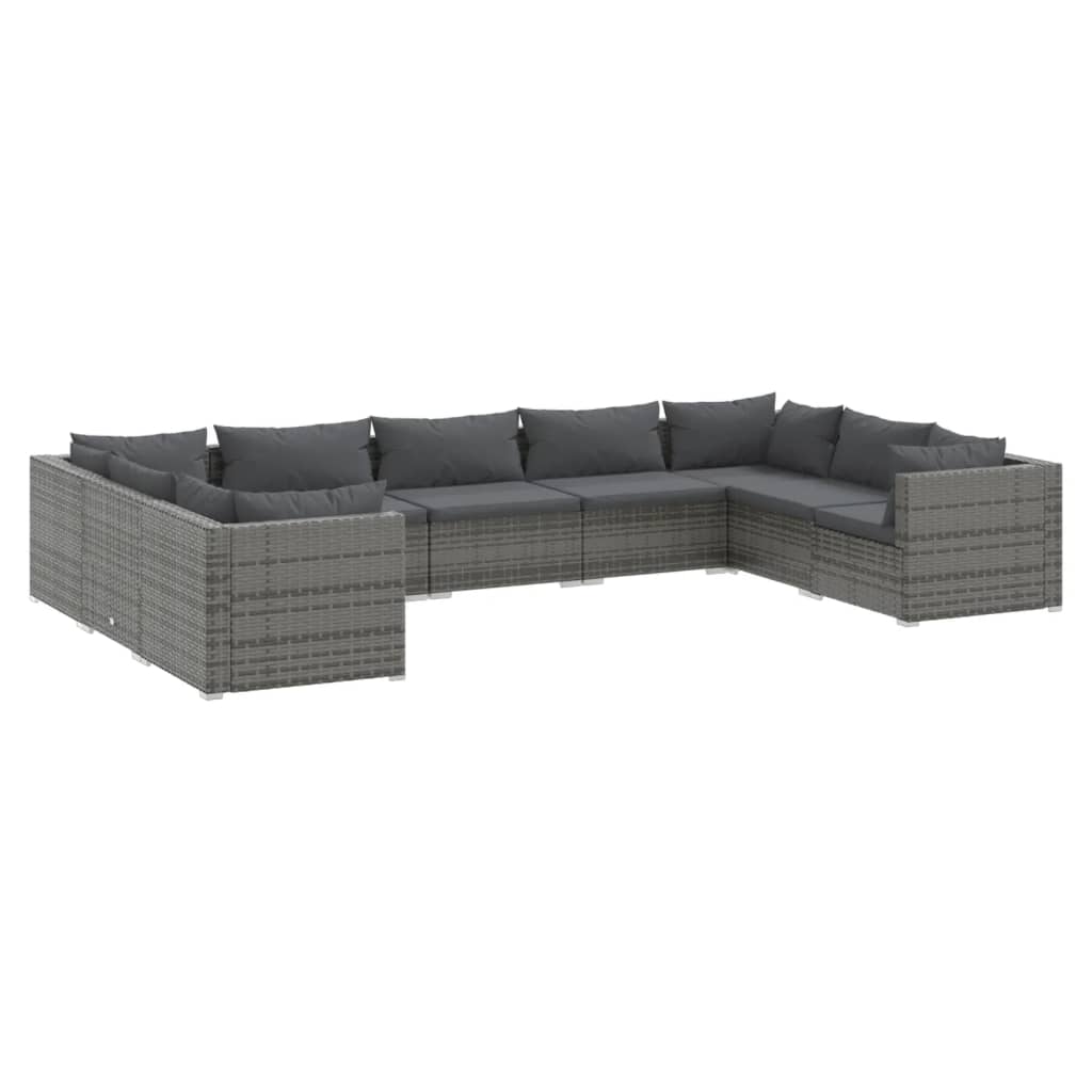 9-tlg. Garten-Lounge-Set mit Kissen Grau Poly Rattan