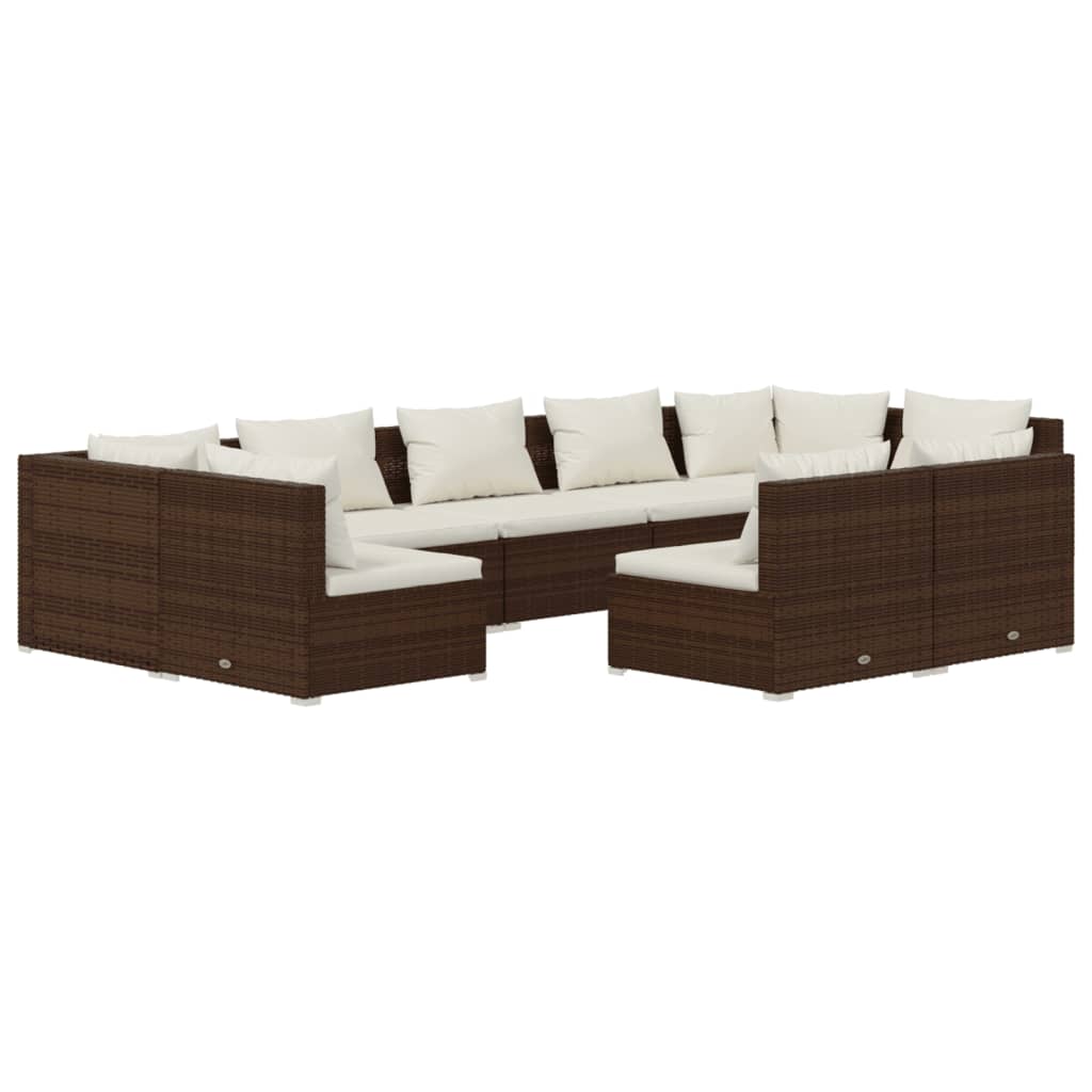10-tlg. Garten-Lounge-Set mit Kissen Braun Poly Rattan
