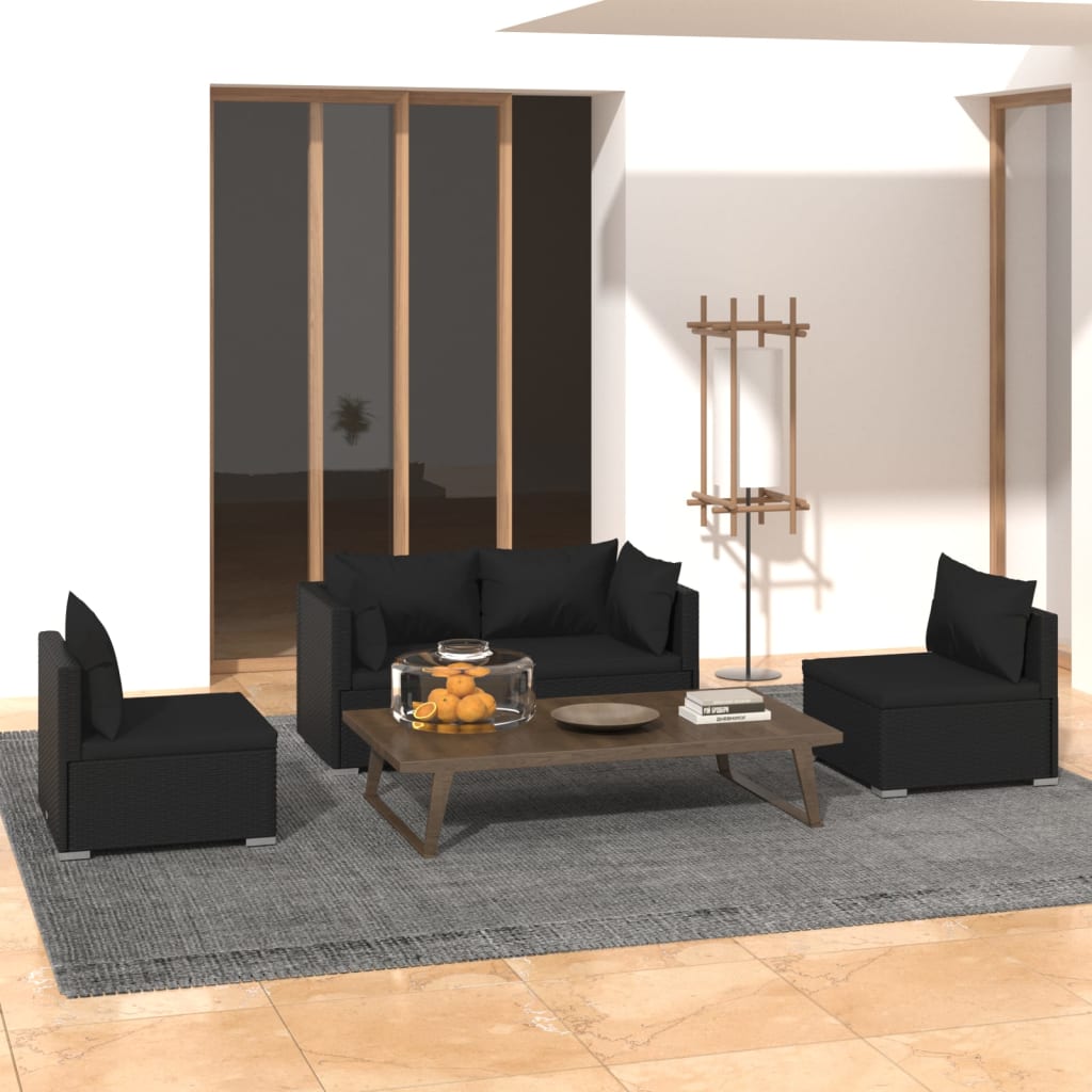 4-tlg. Garten-Lounge-Set mit Kissen Poly Rattan Schwarz