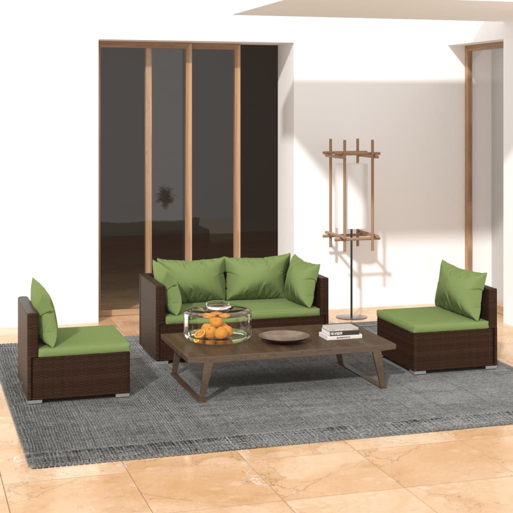 4-tlg. Garten-Lounge-Set mit Kissen Poly Rattan Braun