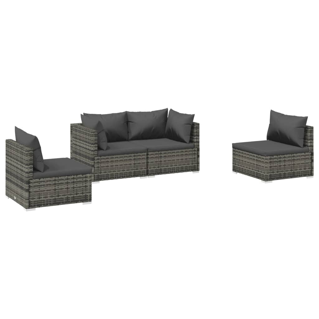 4-tlg. Garten-Lounge-Set mit Kissen Poly Rattan Grau