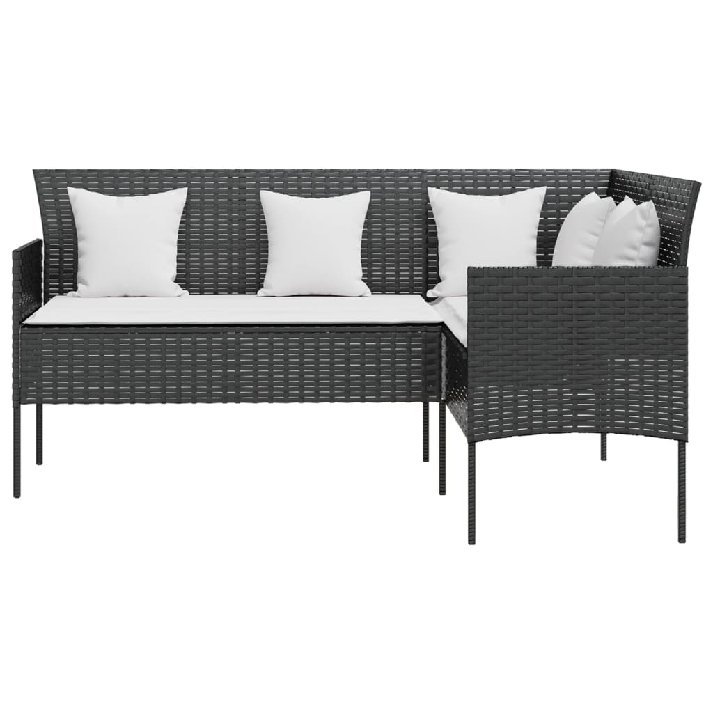 5-tlg. Sofagarnitur in L-Form mit Kissen Poly Rattan Schwarz