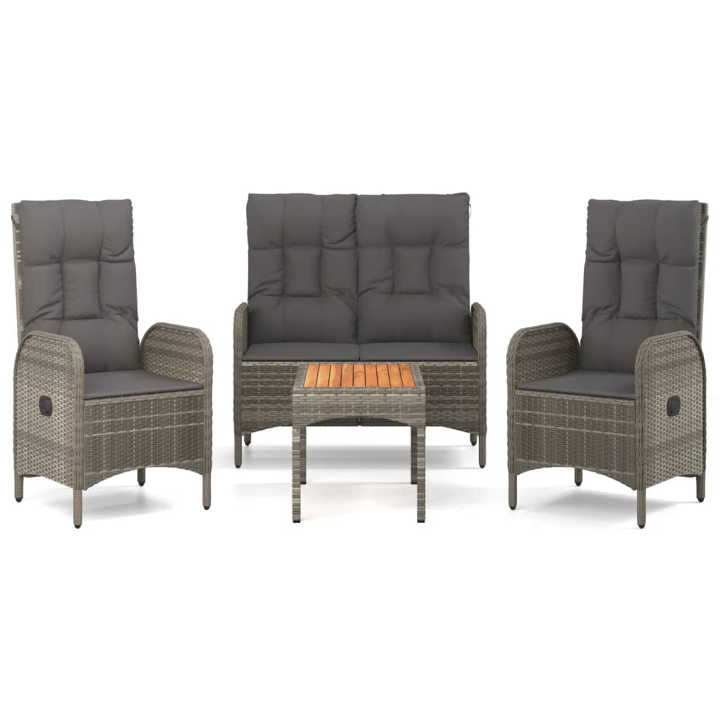 4-tlg. Garten-Essgruppe mit Kissen Grau Poly Rattan
