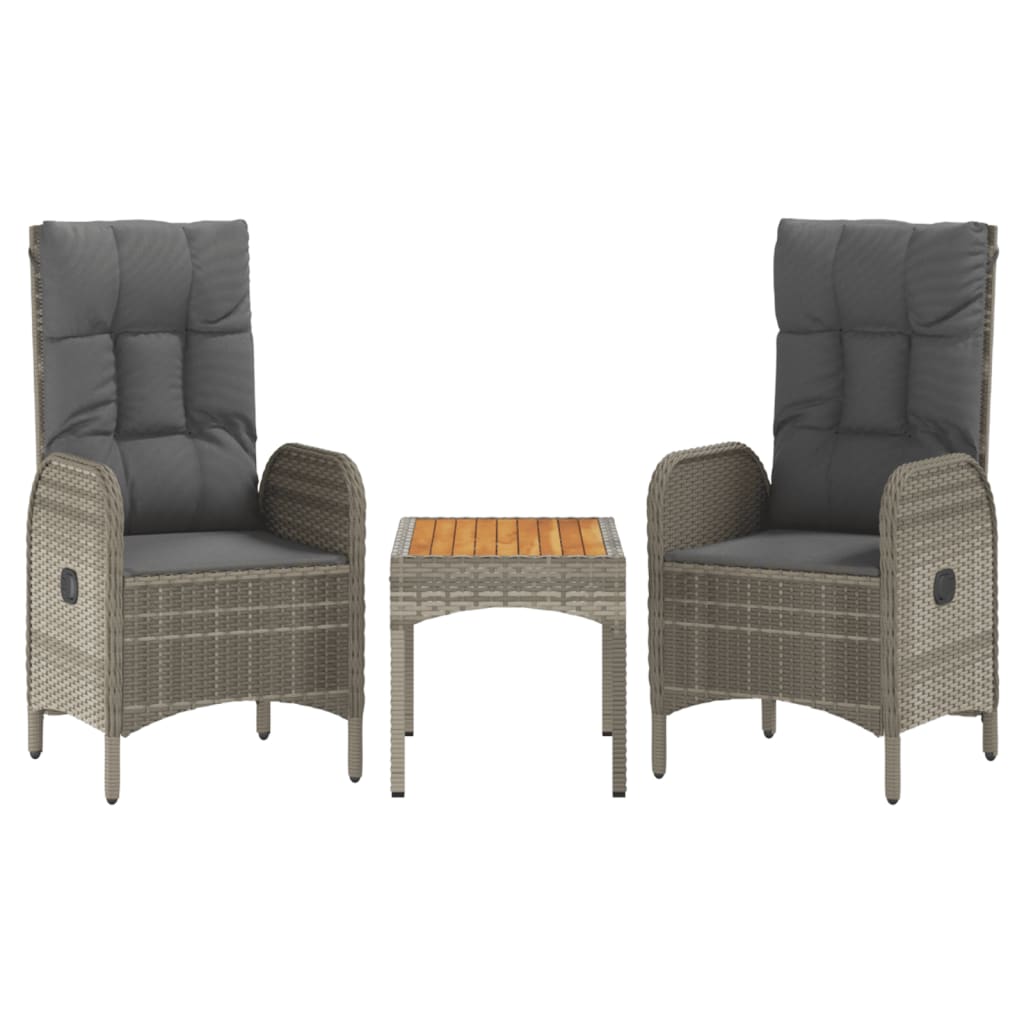 3-tlg. Garten-Essgruppe mit Kissen Grau Poly Rattan