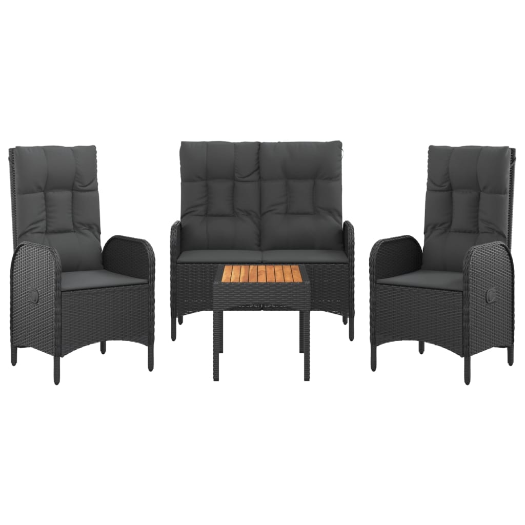 4-tlg. Garten-Essgruppe mit Kissen Schwarz Poly Rattan