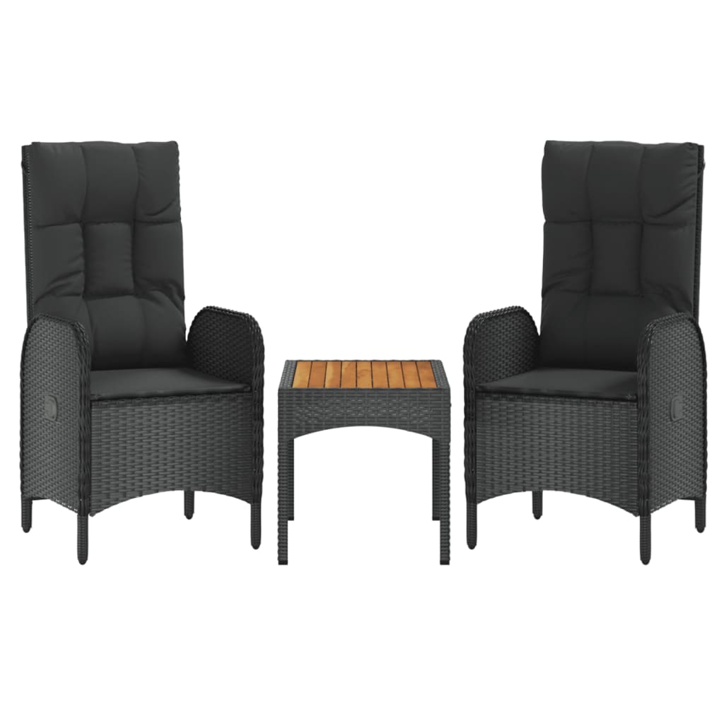 3-tlg. Garten-Essgruppe mit Kissen Schwarz Poly Rattan