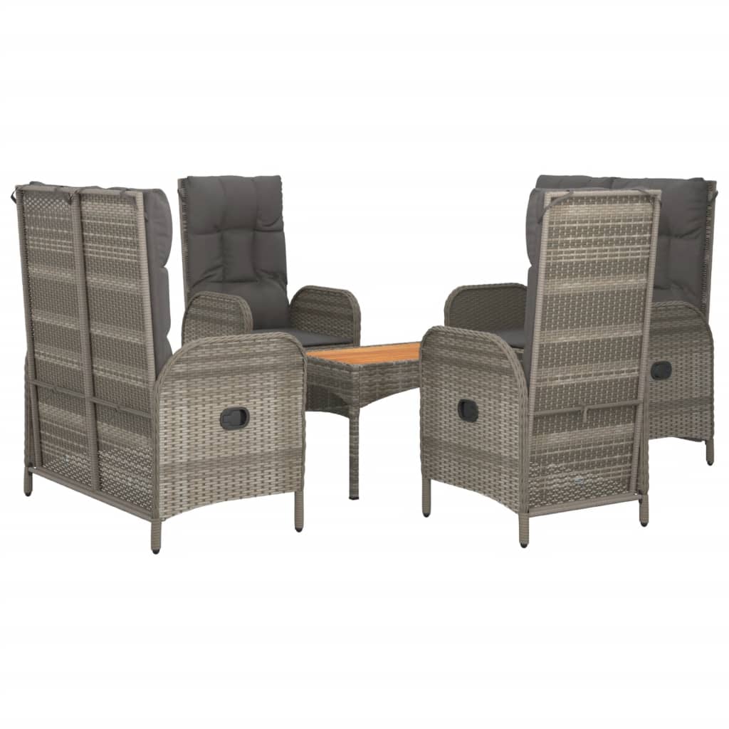 5-tlg. Garten-Essgruppe mit Kissen Grau Poly Rattan
