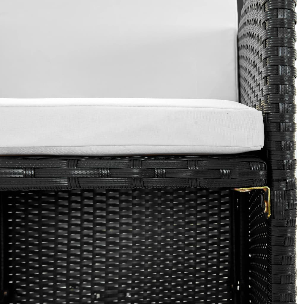 3-tlg. Bistro-Set mit Auflagen Poly Rattan Schwarz