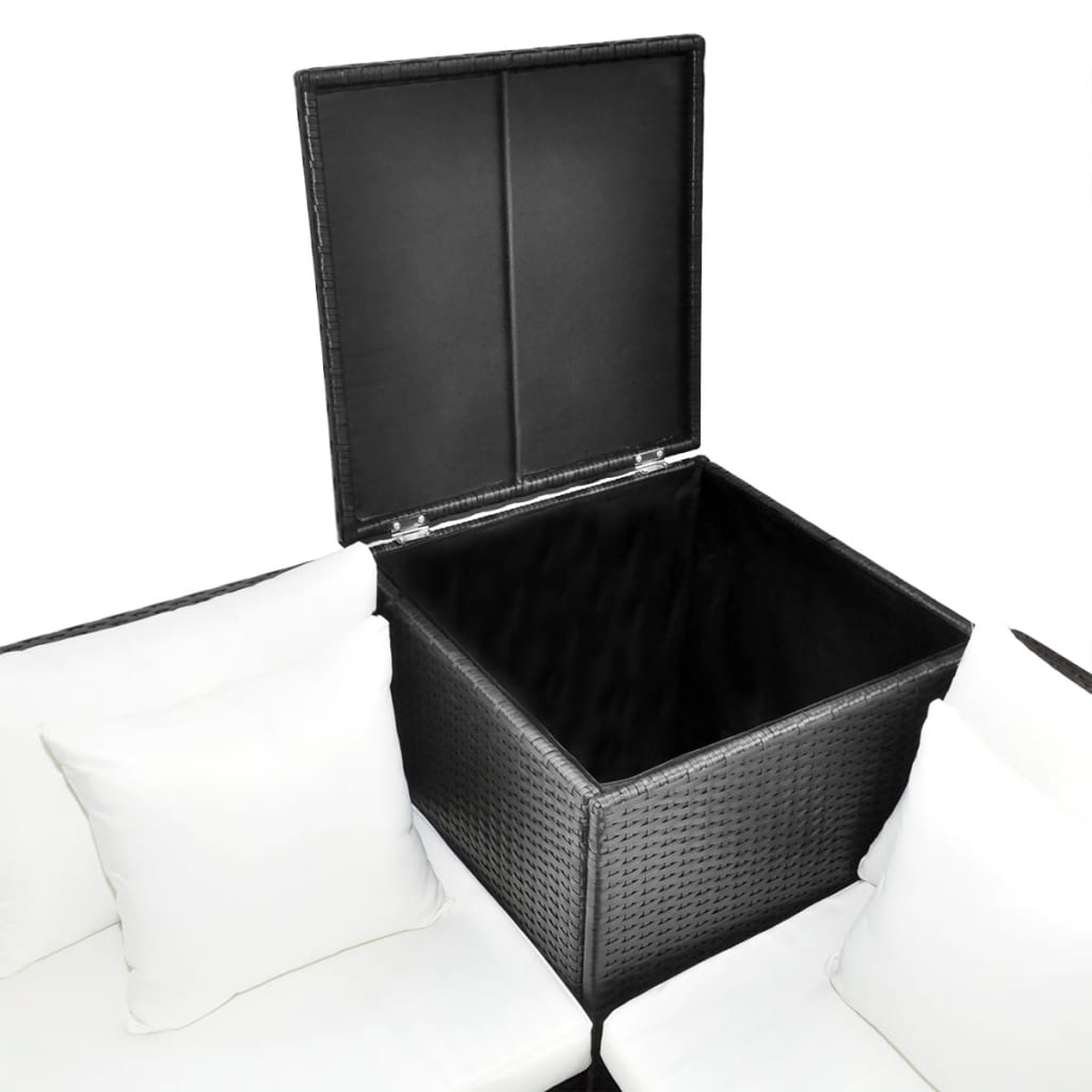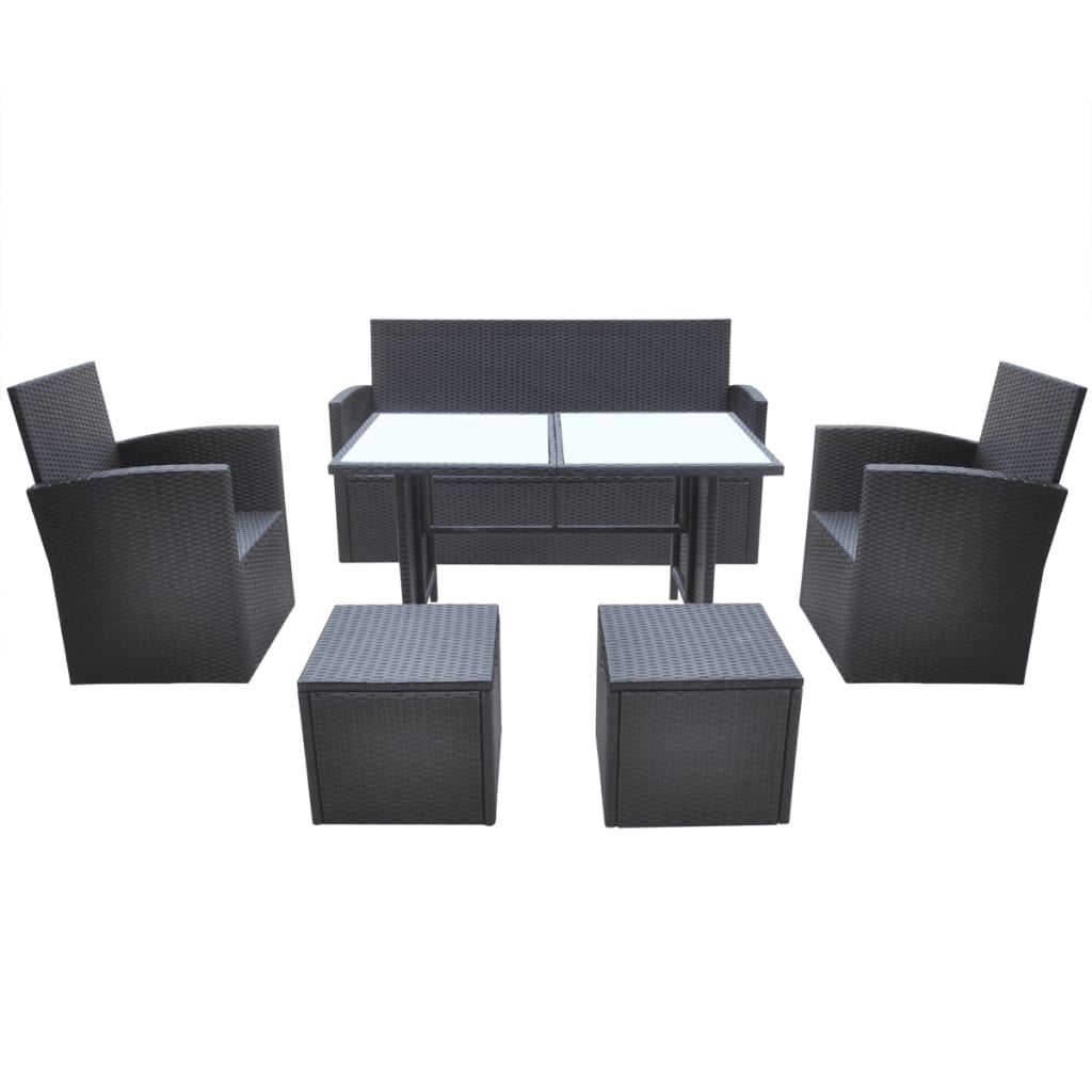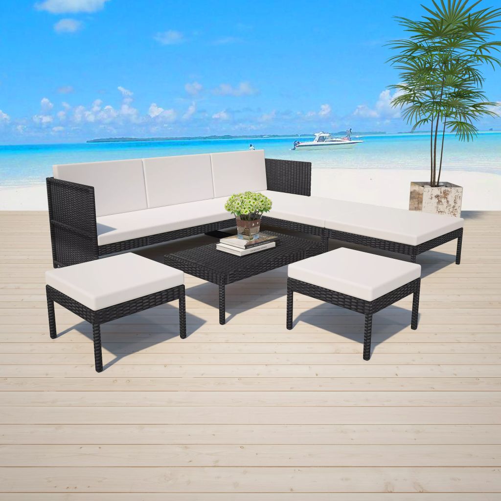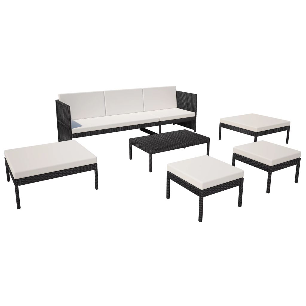 6-tlg. Garten-Lounge-Set mit Auflagen Poly Rattan Schwarz