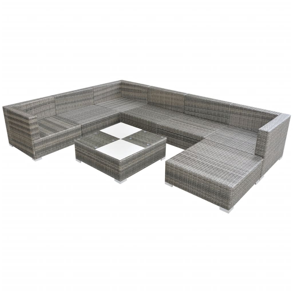 8-tlg. Garten-Lounge-Set mit Kissen Poly Rattan Grau