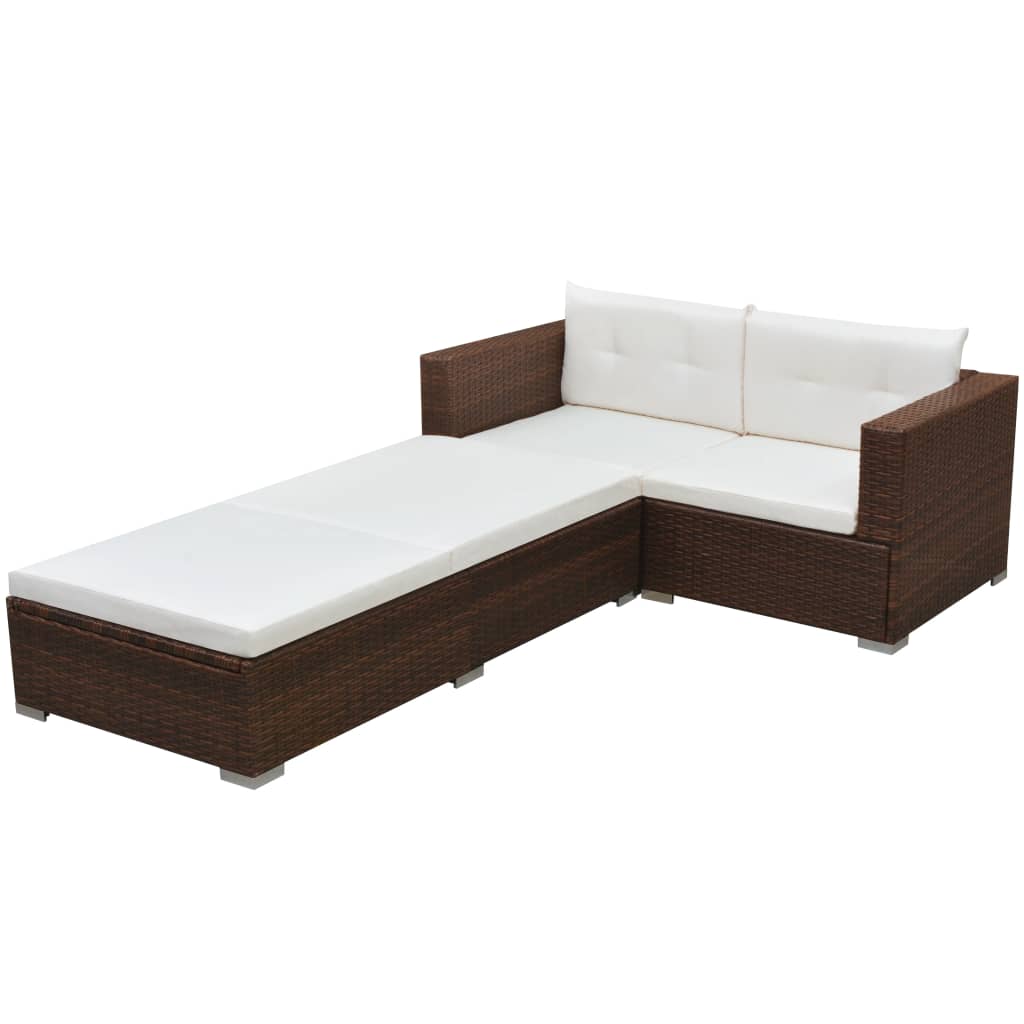 3-tlg. Garten-Lounge-Set mit Auflagen Poly Rattan Braun