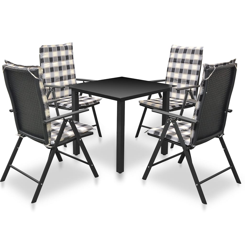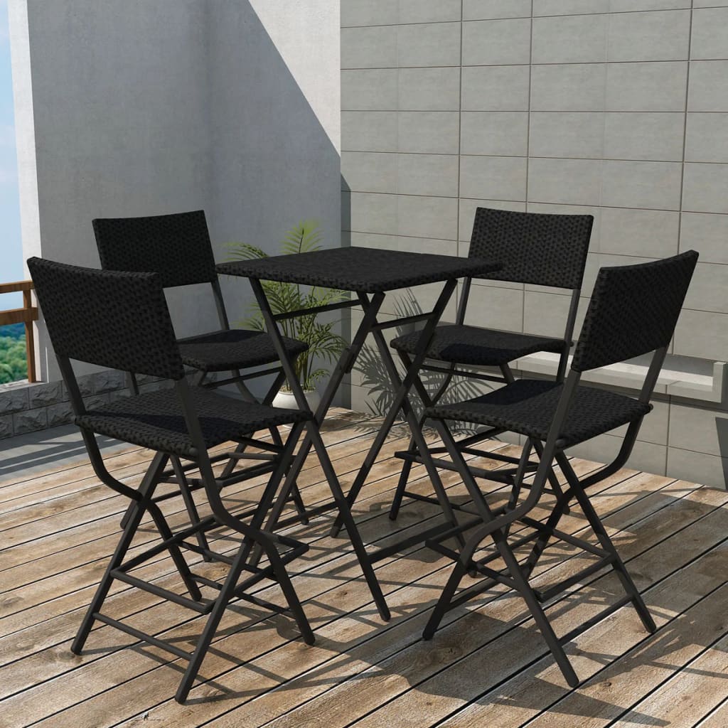 5-tlg. Garten-Essgruppe Klappbar Stahl Poly Rattan Schwarz