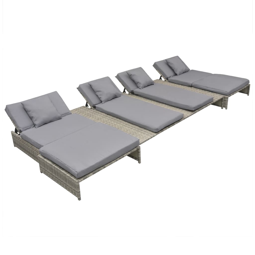5-tlg. Garten-Lounge-Set mit Auflagen Poly Rattan Grau