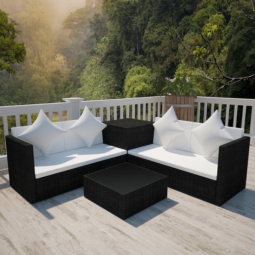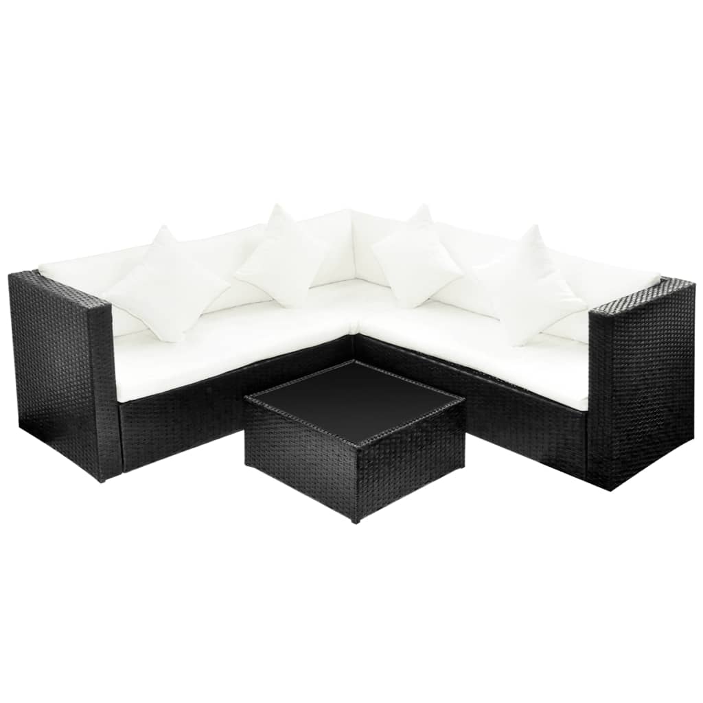 4-tlg. Garten-Lounge-Set mit Auflagen Poly Rattan Schwarz
