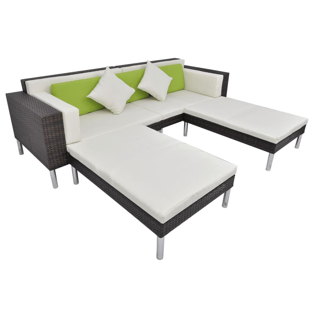 5-tlg. Garten-Lounge-Set mit Kissen Poly Rattan Braun