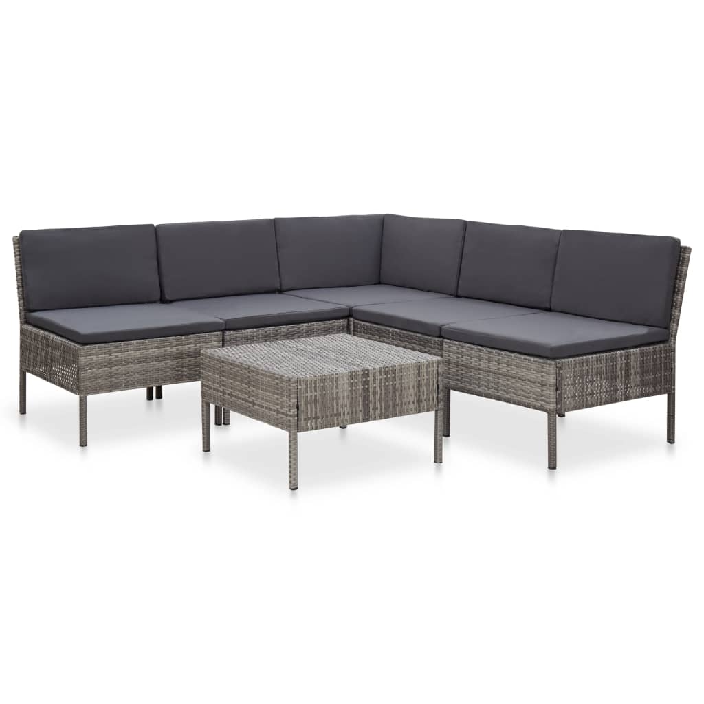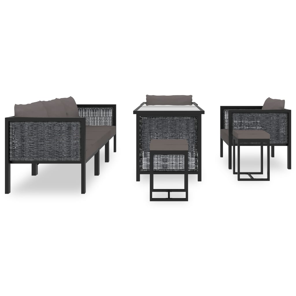 6-tlg. Garten-Lounge-Set mit Auflagen Poly Rattan Anthrazit
