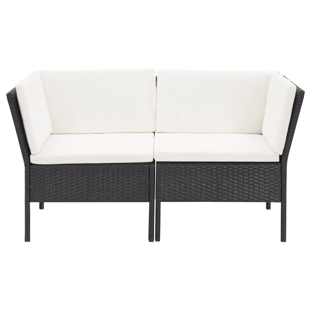 3-tlg. Garten-Lounge-Set mit Auflagen Poly Rattan Schwarz