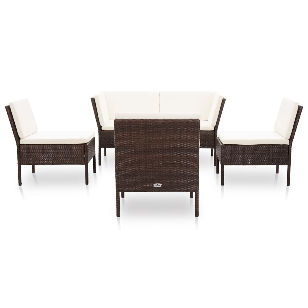 5-tlg. Garten-Essgruppe Poly Rattan Schwarz und Braun