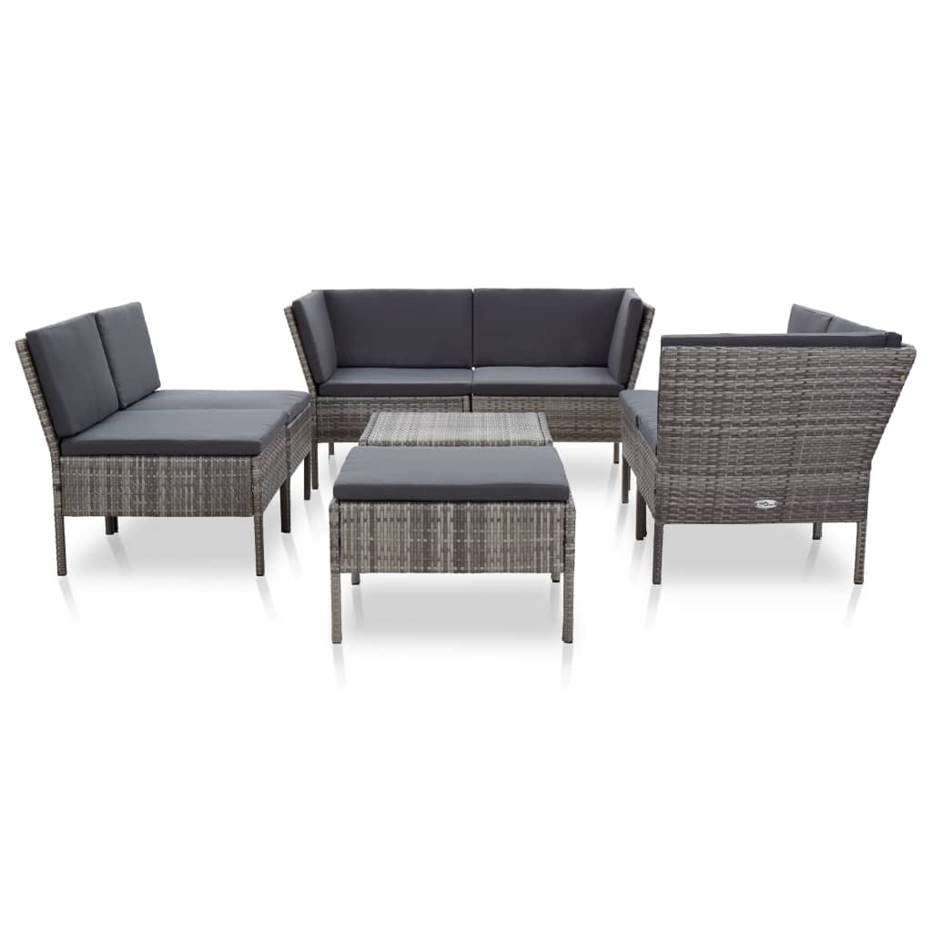 8-tlg. Garten-Lounge-Set mit Auflagen Poly Rattan Grau