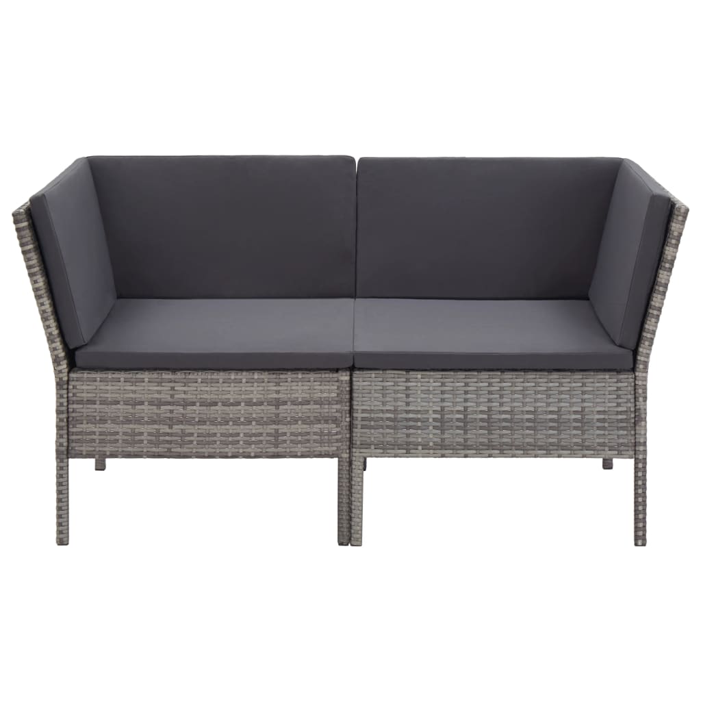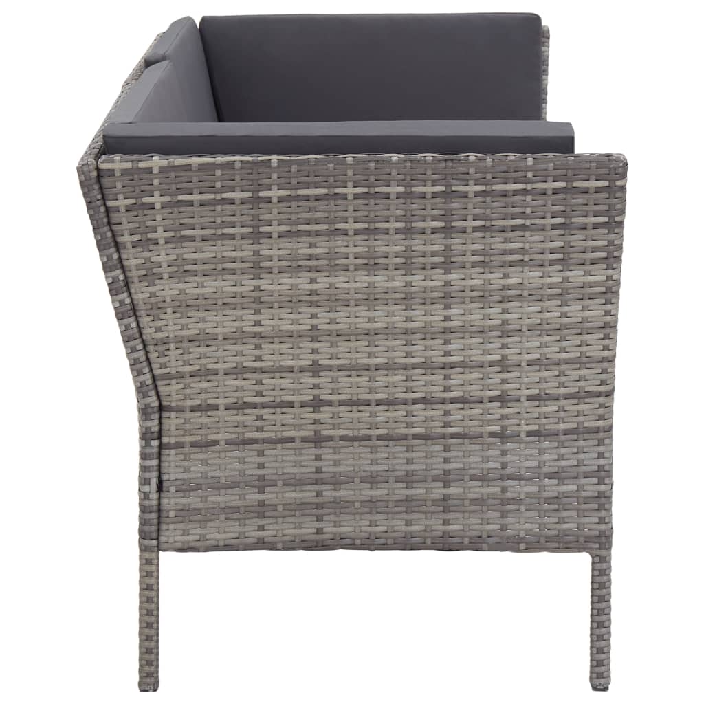 3-tlg. Garten-Lounge-Set mit Auflagen Poly Rattan Grau