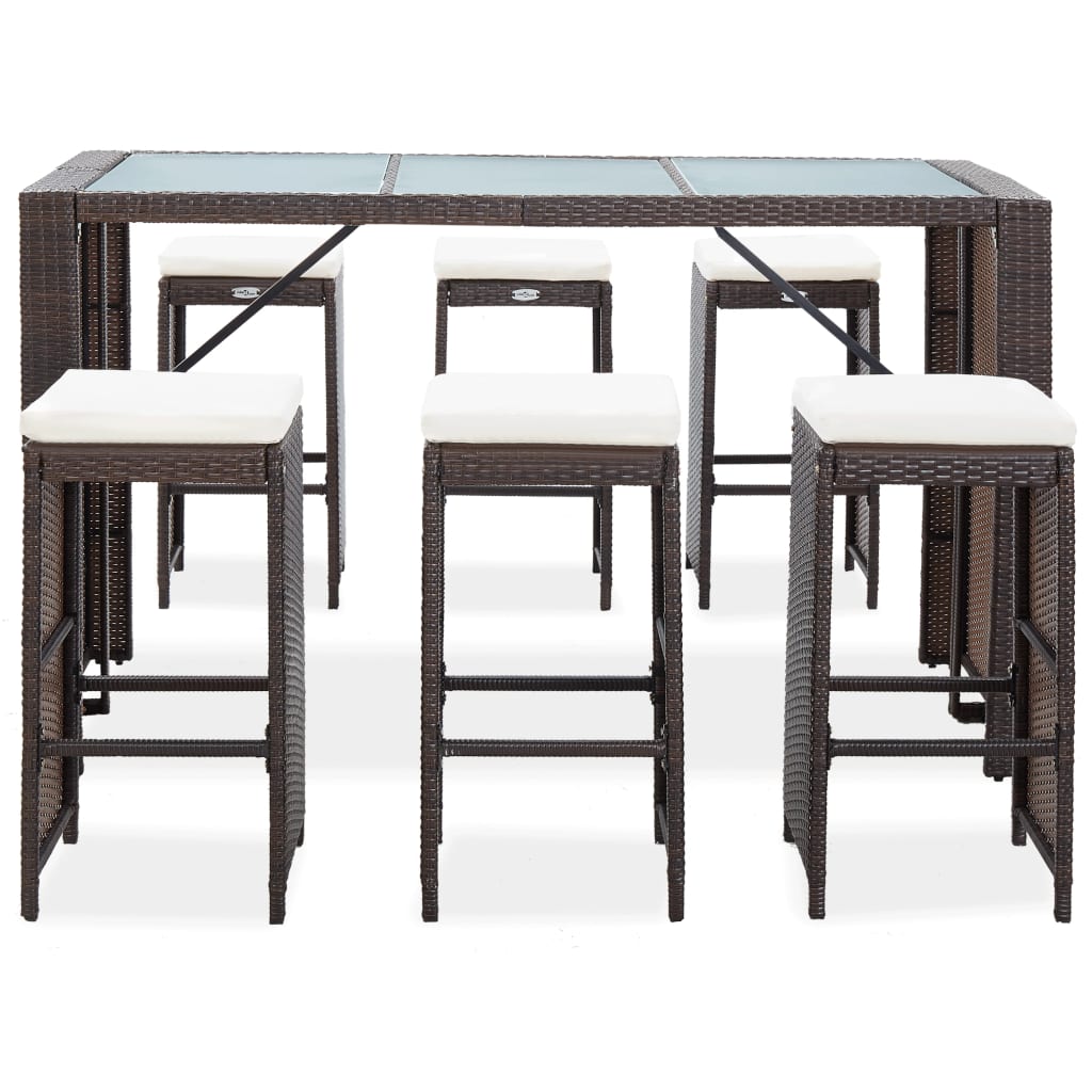 7-tlg. Gartenbar-Set mit Auflagen Poly Rattan Braun