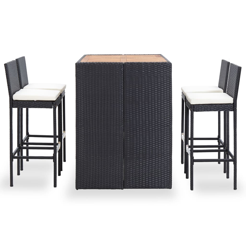 5-tlg. Garten-Bar-Set Poly Rattan und Akazienholz Schwarz