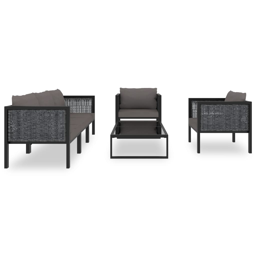 5-tlg. Garten-Lounge-Set mit Auflagen Poly Rattan Anthrazit
