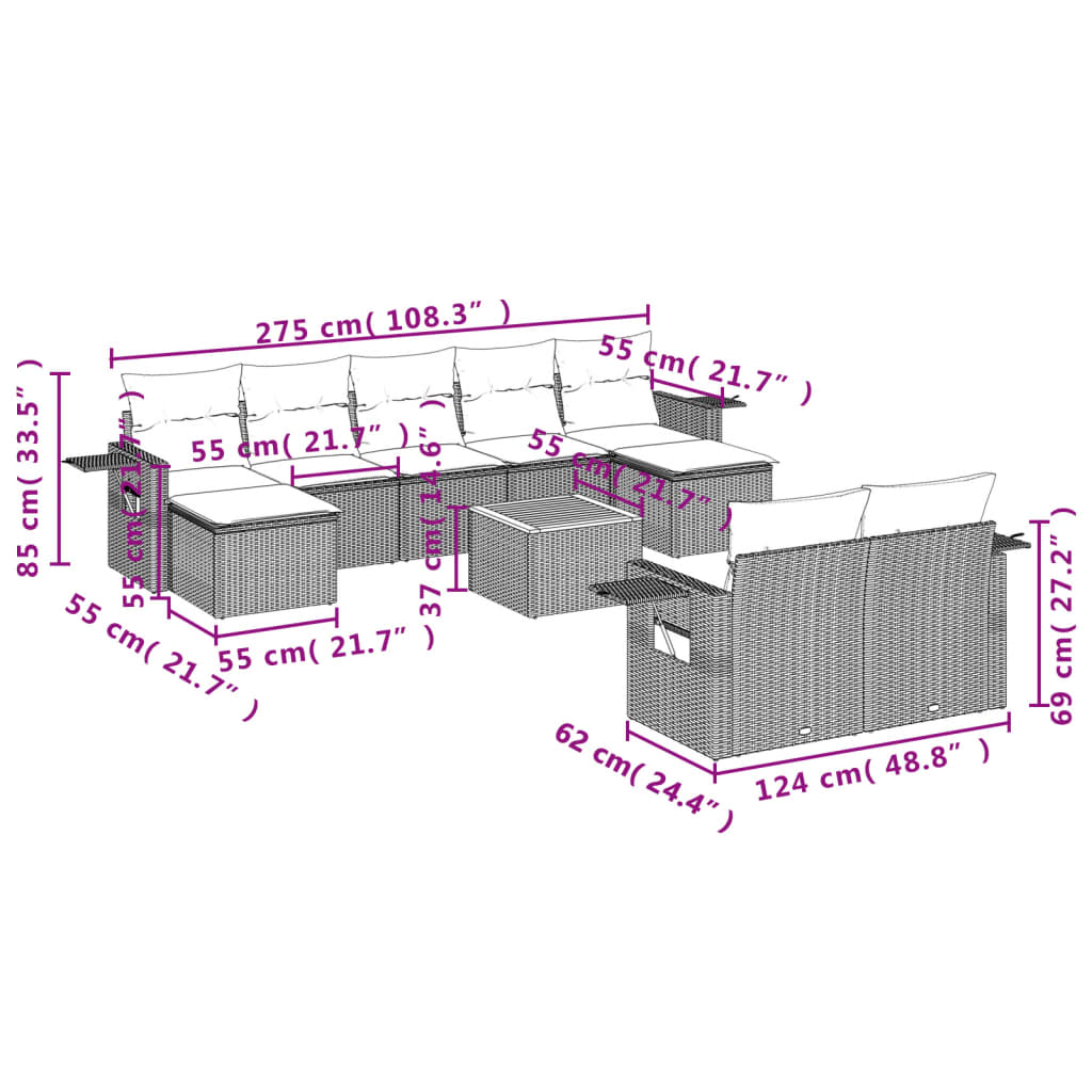 Diese Garten-Sofagarnitur ist die perfekte Ergänzung zu deinem Garten, deiner Terrasse oder deinem Innenhof. Sie bietet einen bequemen und einladenden Platz, um mit Familie und Freunden zu plaudern oder dich einfach nur zu entspannen und das Leben im Freien zu genießen. Langlebiges Material: PE-Rattan, auch als Poly Rattan bekannt, ist ein robustes, pflegeleichtes synthetisches Material, das die Optik von natürlichem Rattan aufweist. Es kennzeichnet sich durch ein geringes Eigengewicht und lässt sich einfach reinigen. Aufgrund seiner Haltbarkeit und Witterungsbeständigkeit wird es häufig bei der Herstellung von Gartenmöbeln verwendet.Praktischer Beistelltisch: Dieses Gartensofa verfügt über klappbare Ablagen mit Gasfedern an den Armlehnen, auf denen du verschieden Sachen griffbereit aufbewahren kannst.Stabile und pflegeleichte Tischplatte: Dieser Gartentisch besitzt eine Tischplatte aus Akazienholz, die robust und langlebig ist und sich leicht mit einem feuchten Tuch reinigen lässt.Abnehmbarer und waschbarer Bezug: Diese Sitzkissen verfügen über abnehmbare Bezüge für einfaches Waschen und Pflegen.Modulares Design: Dank des modularen Designs lassen sich die Gartenmöbel völlig flexibel und einfach umstellen, um deinen Außenbereich ganz individuell zu gestalten. Gut zu wissen:Wir empfehlen dir, deine Gartenmöbel mit einer wasserdichten Hülle zu schützen, um lange Zeit eine ansprechende Optik aufzuweisen.