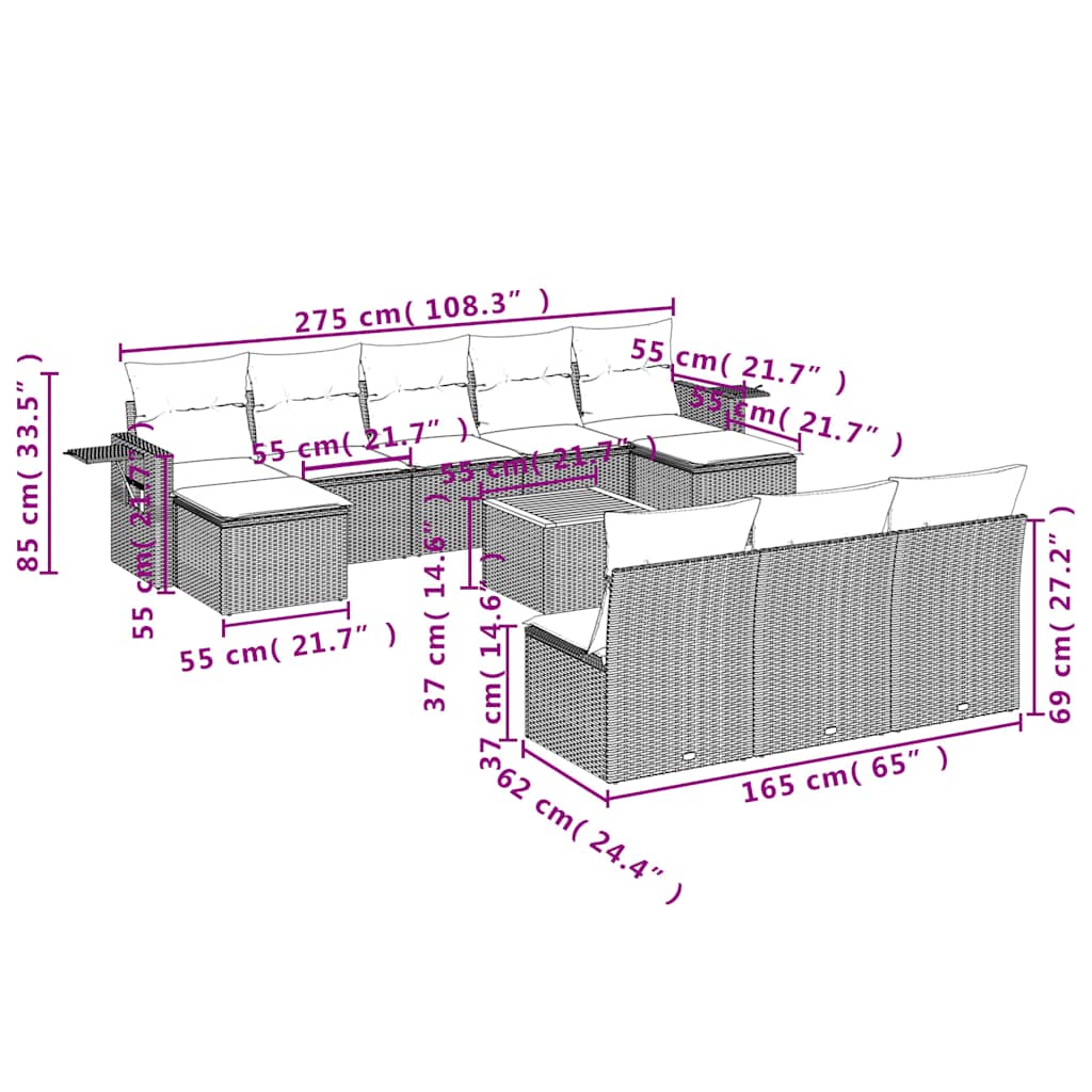 Dieses Gartensofa-Set ist die perfekte Ergänzung für Ihren Garten, Ihre Terrasse oder Ihren Innenhof und bietet einen komfortablen und einladenden Platz zum Plaudern mit Familie und Freunden oder einfach zum Entspannen und Genießen der Natur. Langlebiges Material: PE-Rattan, auch bekannt als Polyrattan, ist ein starkes, pflegeleichtes synthetisches Material, das wie natürliches Rattan aussieht. Es ist leicht, einfach zu reinigen und wird aufgrund seiner Langlebigkeit und Wetterbeständigkeit häufig für Gartenmöbel verwendet.Praktischer Beistelltisch: Dieses Gartenmöbelset verfügt über einen klappbaren Beistelltisch mit Gasdruckfeder an den Armlehnen, der einen praktischen Platz bietet, um Ihre wichtigsten Utensilien griffbereit zu haben.Stabile und leicht zu reinigende Tischplatte: Dieser Gartentisch hat eine Tischplatte aus Akazienholz, die robust, langlebig und leicht mit einem feuchten Tuch zu reinigen ist.Abnehmbarer und waschbarer Bezug: Diese Sitzkissen verfügen über abnehmbare Bezüge für einfaches Waschen und Pflegen.Modulares Design: Dieses Gartenmöbelset ist modular aufgebaut und daher völlig flexibel und leicht zu bewegen, sodass Sie Ihre Gartenmöbel individuell zusammenstellen können. Gut zu wissen:Damit Ihre Gartenmöbel schön bleiben, empfehlen wir Ihnen, sie mit einer wasserdichten Abdeckung zu schützen.