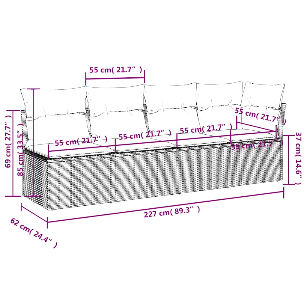 Entspanne dich und genieße die Natur auf diesem bequemen 4-Sitzer-Gartensofa! Langlebiges Material: PE-Rattan, auch als Poly Rattan bekannt, ist ein robustes, pflegeleichtes synthetisches Material, das die Optik von natürlichem Rattan aufweist. Es kennzeichnet sich durch ein geringes Eigengewicht und lässt sich einfach reinigen. Aufgrund seiner Haltbarkeit und Witterungsbeständigkeit wird es häufig bei der Herstellung von Gartenmöbeln verwendet.Bequemes Sitzerlebnis: Dieser Gartensessel mit dick gepolsterten Kissen bietet ein angenehmes Sitzgefühl.Abnehmbarer und waschbarer Bezug: Diese Sitzkissen verfügen über abnehmbare Bezüge für einfaches Waschen und Pflegen.Modulares Design: Dank des modularen Designs lassen sich die Gartenmöbel völlig flexibel und einfach umstellen, um deinen Außenbereich ganz individuell zu gestalten. Gut zu wissen:Wir empfehlen dir, deine Gartenmöbel mit einer wasserdichten Hülle zu schützen, um lange Zeit eine ansprechende Optik aufzuweisen.