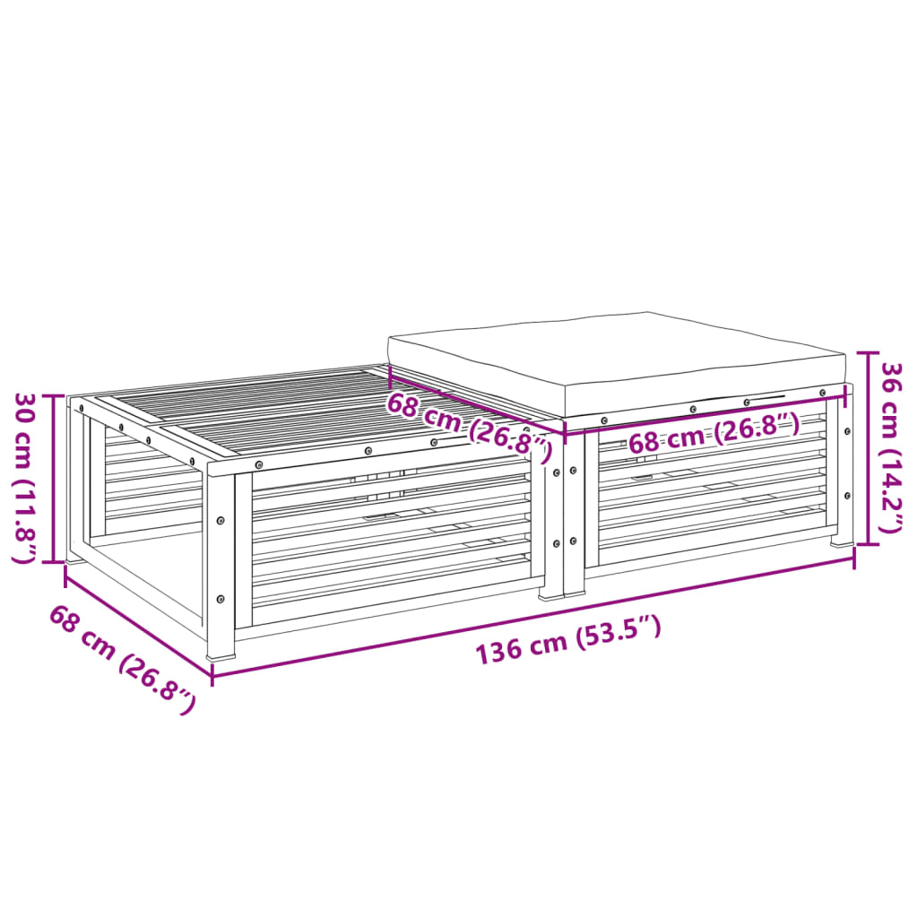 Dieser Outdoor-Holztisch mit Hocker ist eine großartige Ergänzung für deinen Garten, deine Terrasse oder deinen Innenhof. Auf diesem Outdoor-Fußhocker sitzend, lässt es sich mit Familie und Freunden plaudern oder einfach nur das Wetter zu genießen. Robustes und stabiles Gestell: Massives Akazienholz ist für seine Festigkeit und Haltbarkeit bekannt. Seine vielfältige Farbe und seine einzigartige Maserung verleihen ihm eine attraktive Optik. Dank seiner ausgezeichneten Stabilität und Witterungsbeständigkeit eignet es sich ideal für die Herstellung von Innen- und Außenmöbeln. Außerdem sorgt der pulverbeschichtete Stahlrahmen dafür, dass die Gartenmöbel stark und stabil für den täglichen Gebrauch im Freien sind.Abnehmbarer und waschbarer Bezug: Das Sitzkissen verfügt über abnehmbare Bezüge für einfaches Waschen und Pflegen.Modulares Design: Dank des modularen Designs lassen sich diese Gartenmöbel völlig flexibel und einfach umstellen, um deinen Außenbereich ganz individuell zu gestalten.Gut belüftet und Vermeidung von Wasseransammlungen: Das Latten-Design sorgt für eine optimale Luftzirkulation und verhindert effektiv, dass sich das Wasser auf der Tischplatte ansammelt, wodurch dieses Gartenmöbel trocken und so länger haltbar bleibt. Gut zu wissen:Wir empfehlen dir, deine Gartenmöbel mit einer wasserdichten Hülle zu schützen, um lange Zeit eine ansprechende Optik aufzuweisen.