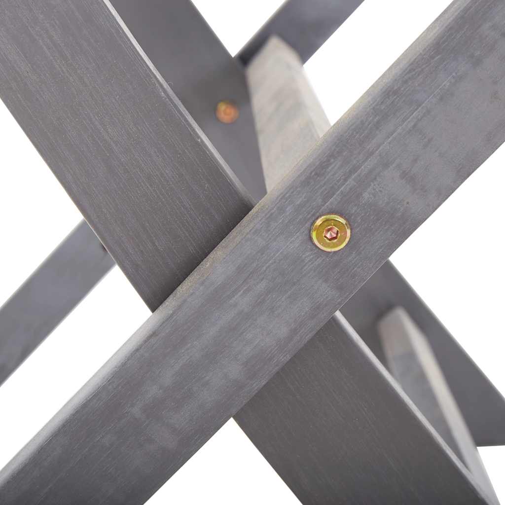 Dieses moderne Set aus klappbaren Gartenstühlen verleiht Ihrem Garten, Ihrer Terrasse oder Ihrem Hof einen Hauch von natürlichem Stil und ist auch eine ausgezeichnete Wahl für Mahlzeiten im Freien. Diese Essstühle bestehen aus hochwertigem Akazienholz, einem tropischen Hartholz, das sowohl wetterfest als auch langlebig ist. Die mit grauer Lackierung behandelte Oberfläche lässt sich leicht mit einem feuchten Tuch reinigen. Zudem können die Stühle bei Nichtgebrauch platzsparend zusammengeklappt werden.