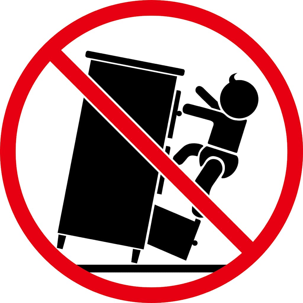 - ACHTUNG: Um ein Umkippen zu vermeiden, muss dieses Produkt mit der mitgelieferten Halterung an der Wand gesichert werden.