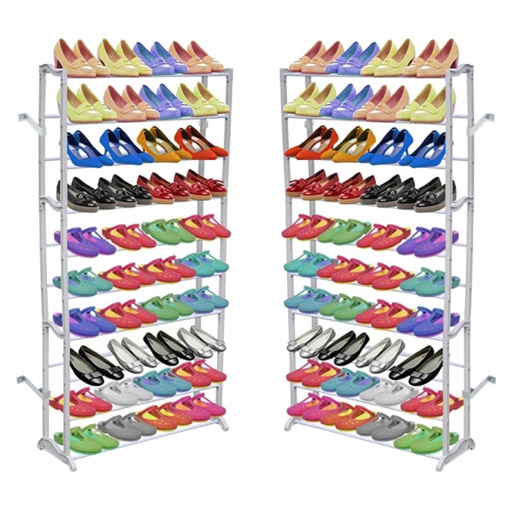 Schuhregal mit 10 Etagen Metall und Vliesstoff Schwarz