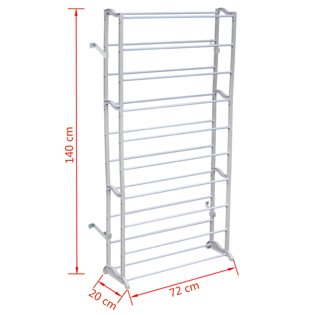 Schuhregal mit 10 Etagen Metall und Vliesstoff Silbern